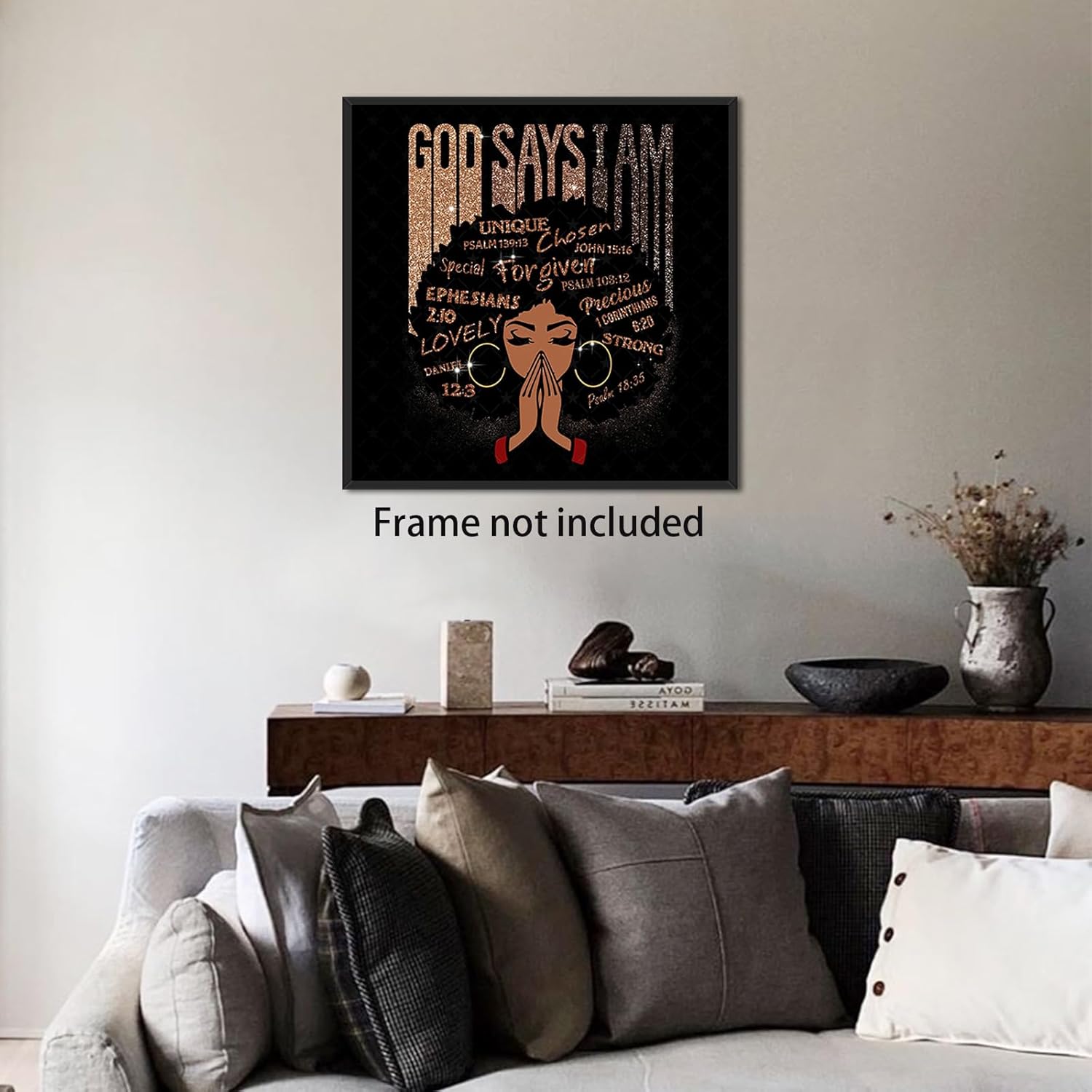 Black Girl Wall Art – “God Says” Poster: Empower your space with our captivating “God Says” poster, a part of our Black Girl Wall Art collection. This inspirational piece features a powerful message of affirmation and faith, beautifully designed to celebrate the strength and resilience of black women. Available in multiple sizes, including 12×12 inches, 16×16 inches, and 24×24 inches, this poster serves as a daily reminder of divine guidance and self-worth.
