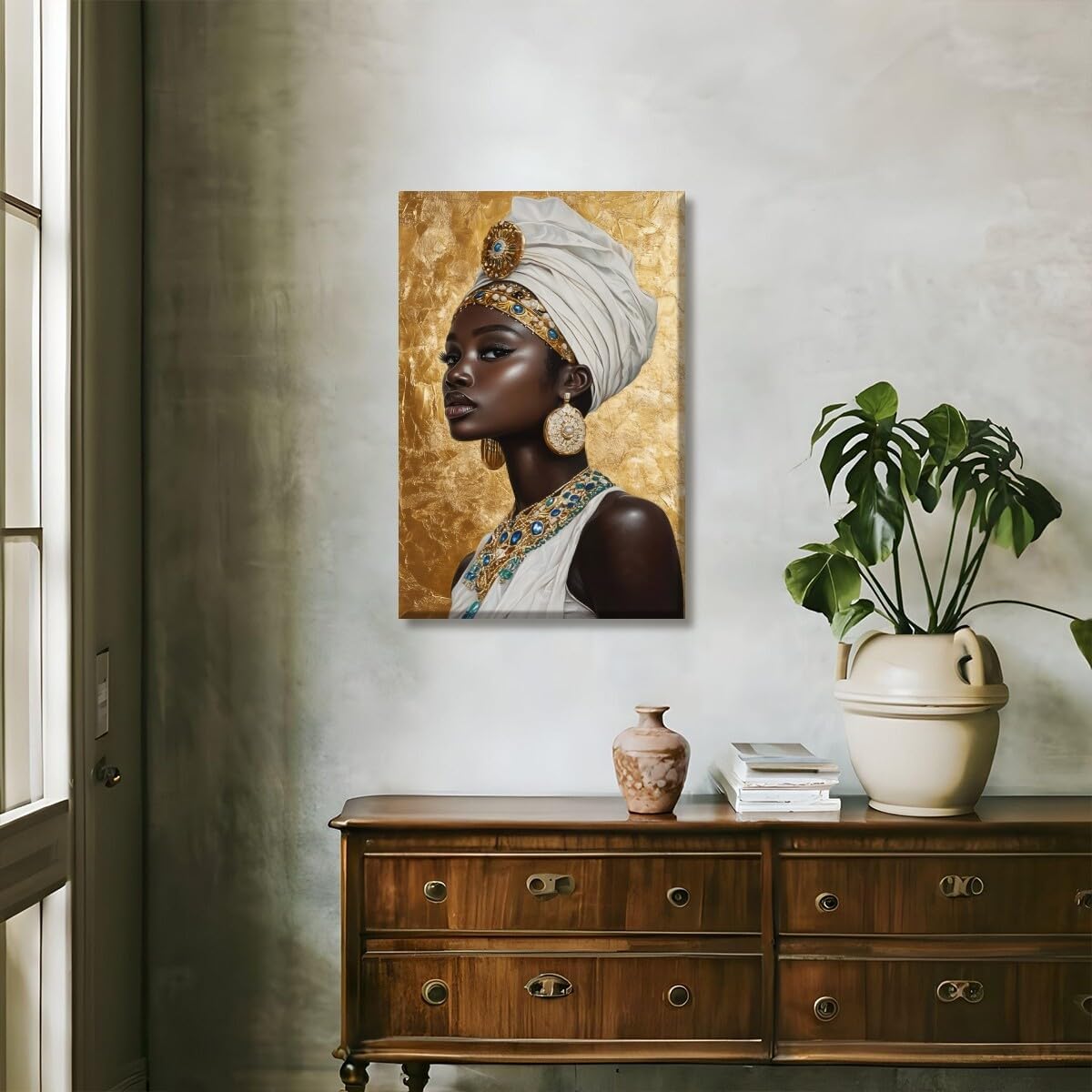 High-Quality Canvas Print: Size is 8×12 inch, not include frames. With its lightweight, frameless design, you can frame it yourself or hang as-is.Printed on durable, high-quality canvas, this African queen wall art perfectly captures the African folk traditions and African symbols. The image’s stunning blend of colors brings pride and energy to your space while honoring the legacy of African culture
