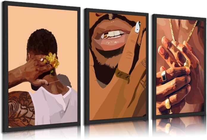 3pcs African American Canvas Wall Art:This Exquisite Collection Features Captivating Black Man Trend Wall Decor Pictures That Celebrate Fashion And Culture.