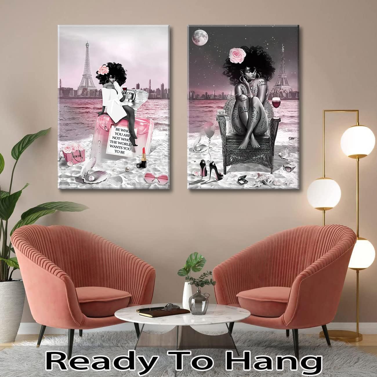 Pink and grey wall decor photo of african american black girl, perfect for women, wife, girlfriend, her, girl, daughter, kid, teen, best friend, holiday, wedding, christmas, thanksgiving, lover day, anniversary, mother’s gift day, birthday.