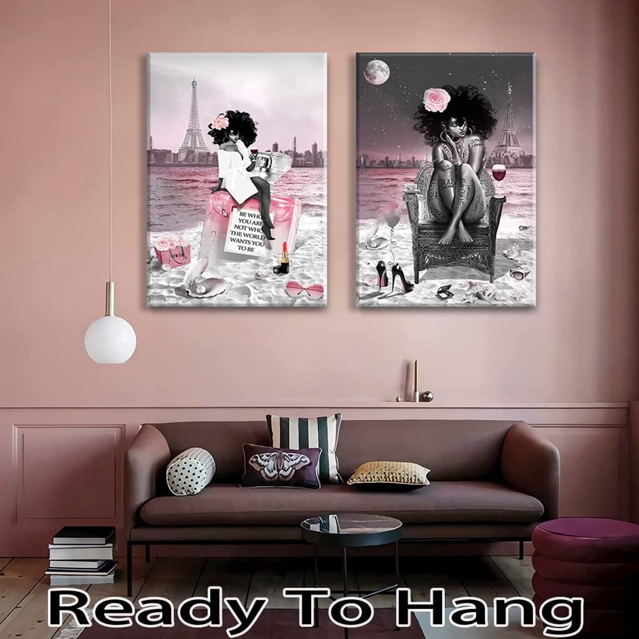 Black girl canvas wall art size: 16“×24”× 2 pieces, ready to hang including hanging accessories.