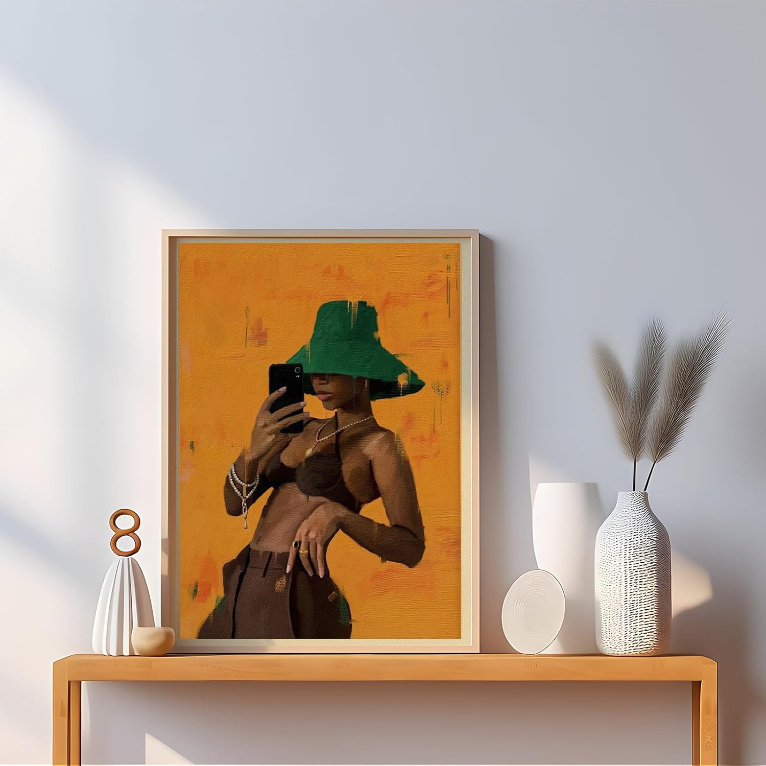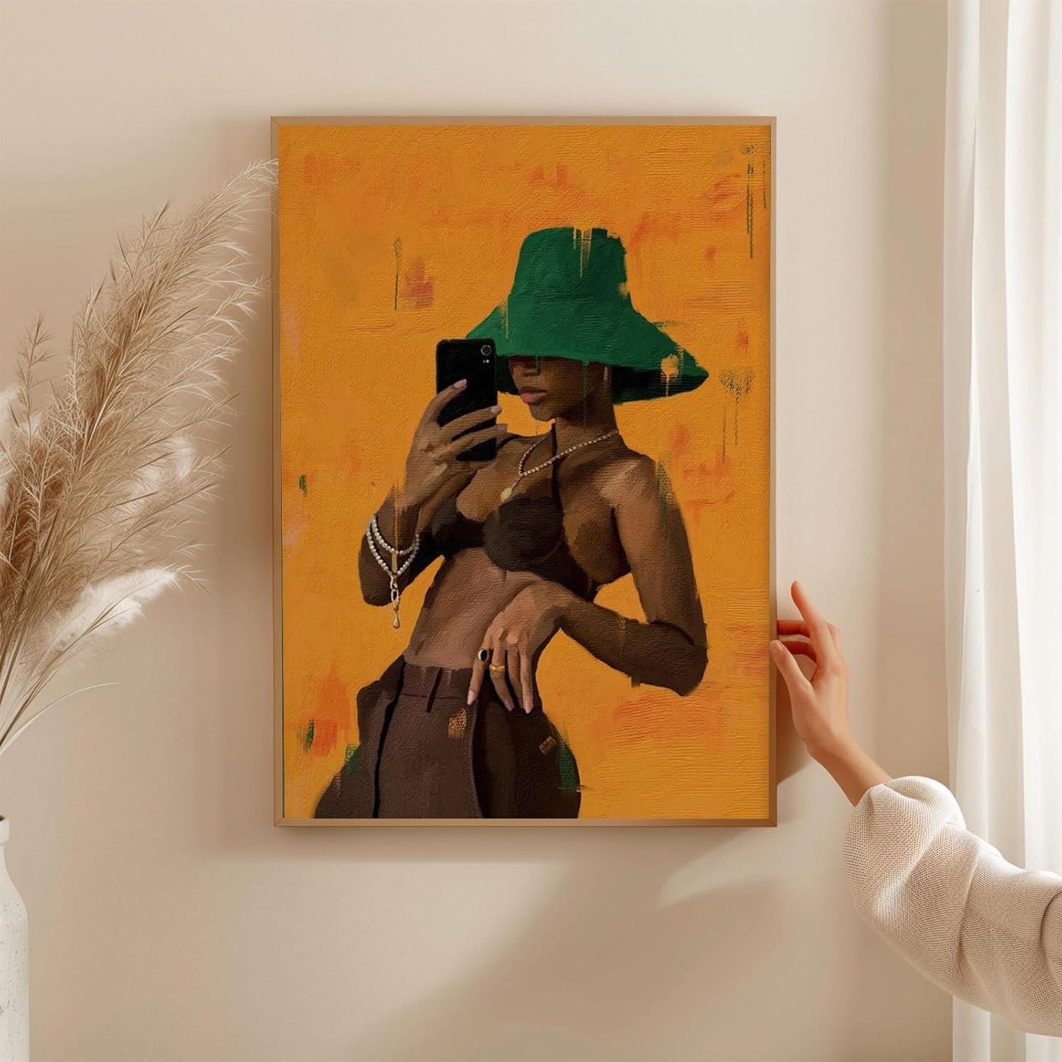 【Modern Feminine Boho Aesthetic】Crafted with a chic, contemporary design, this black girl art piece complements bohemian themes while adding a unique cultural touch to your decor.