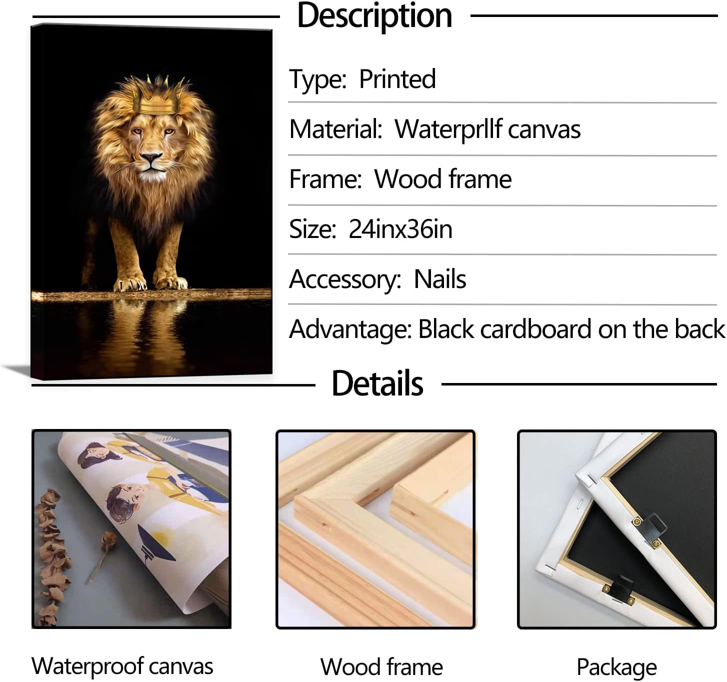 Unlike other Lion Canvas Wall Art,Our Animal canvas wall art,black cardboard is added behind the wooden frame,so the artwork will not transmit light even under light,and the canvas will not slack.The picture always shows perfect condition.