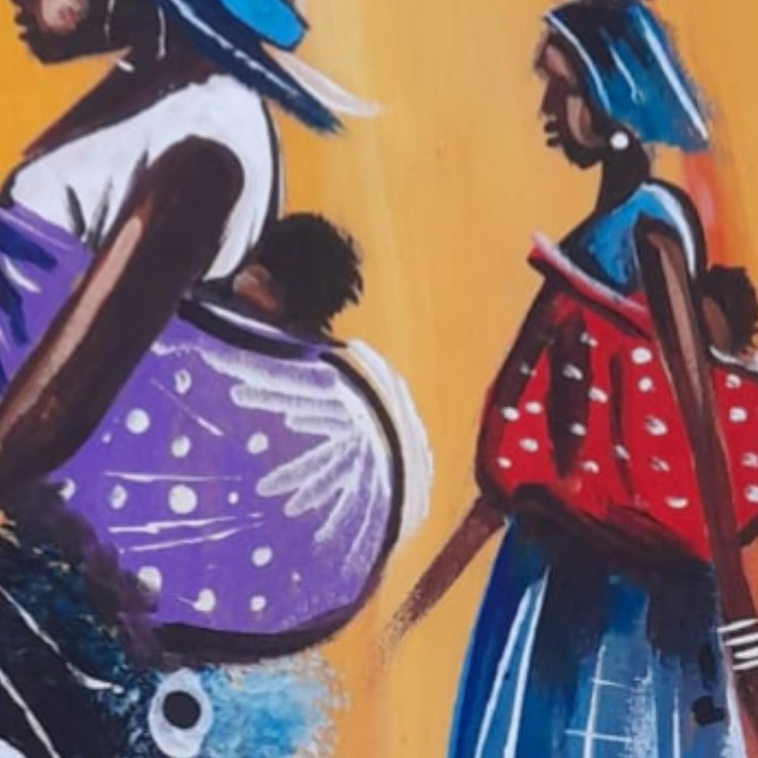 This African acrylic females painting captures the vibrant beauty and strength of African women. The rich and bold colors of the acrylic medium bring to life their radiant skin tones and expressive features. The women portrayed in this artwork are depicted with graceful poise and confidence. Their eyes, filled with wisdom and depth, gaze at the viewer with a sense of resilience and determination. Each brushstroke accentuates their individuality, highlighting the diverse cultural backgrounds and experiences that make up the African identity. The use of vivid hues, such as deep oranges, warm yellows, and earthy browns, evokes a sense of warmth and energy. It illustrates the vibrant spirit and passion that runs through the veins of African women, reflecting their resilience and determination to overcome challenges. The artist pays meticulous attention to details, capturing intricate patterns on their clothing and accessories. These patterns symbolize the rich heritage Dimension: Small 15×25 inches. Medium 20×33 inches.