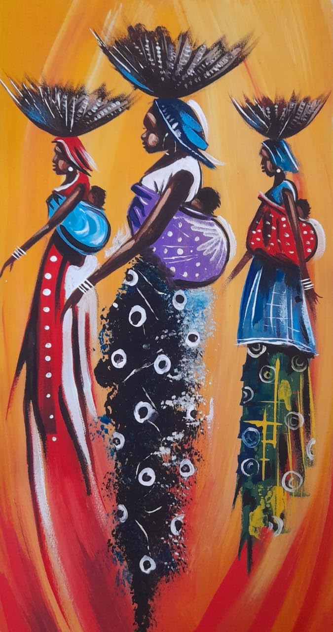 This African acrylic females painting captures the vibrant beauty and strength of African women. The rich and bold colors of the acrylic medium bring to life their radiant skin tones and expressive features. The women portrayed in this artwork are depicted with graceful poise and confidence. Their eyes, filled with wisdom and depth, gaze at the viewer with a sense of resilience and determination. Each brushstroke accentuates their individuality, highlighting the diverse cultural backgrounds and experiences that make up the African identity. The use of vivid hues, such as deep oranges, warm yellows, and earthy browns, evokes a sense of warmth and energy. It illustrates the vibrant spirit and passion that runs through the veins of African women, reflecting their resilience and determination to overcome challenges. The artist pays meticulous attention to details, capturing intricate patterns on their clothing and accessories. These patterns symbolize the rich heritage Dimension: Small 15×25 inches. Medium 20×33 inches.