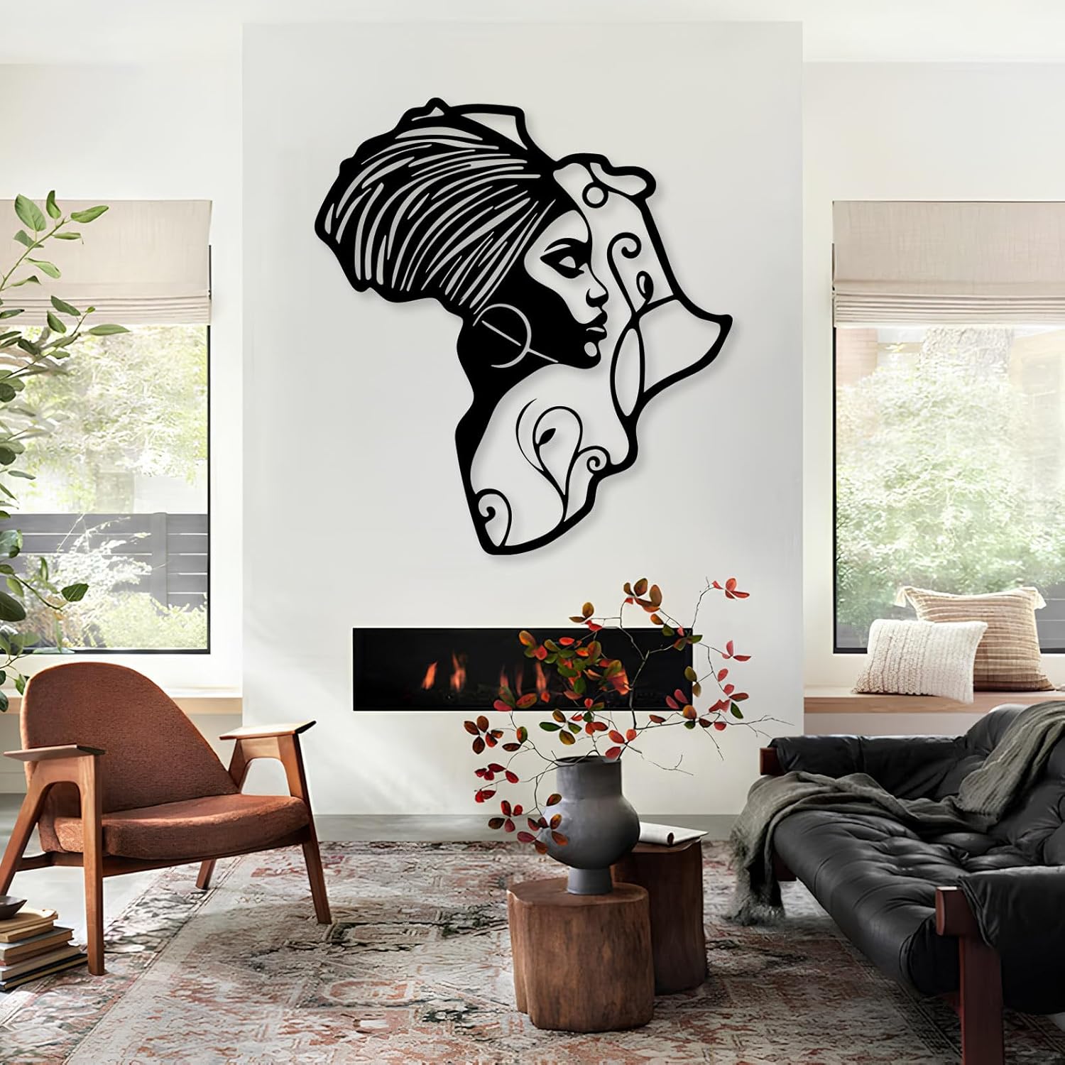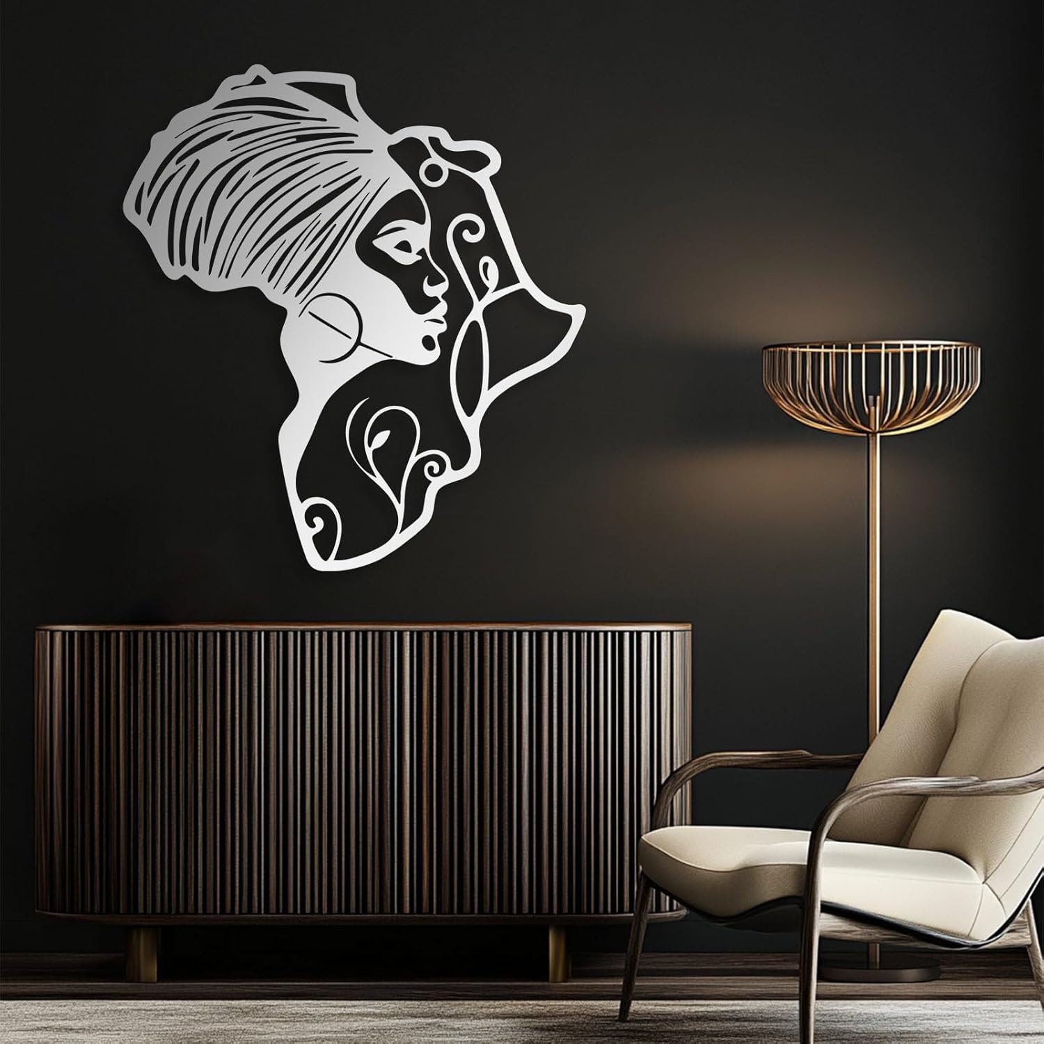 Add a touch of cultural charm and artistic flair to your home with this stunning african woman metal map wall decor. This unique piece features a beautifully detailed metal africa map with the silhouette of a proud African woman in the center, making it a perfect addition to any room in your home.