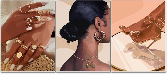 3.Abstract African American Woman Wall Art Decor: This black art wall decor set is ideal for bedroom decor for women, especially those seeking to express empowerment and individuality. With its soft feminine touch, this set serves as beautiful wall decor for girls’ bedrooms or even as office wall art for women.