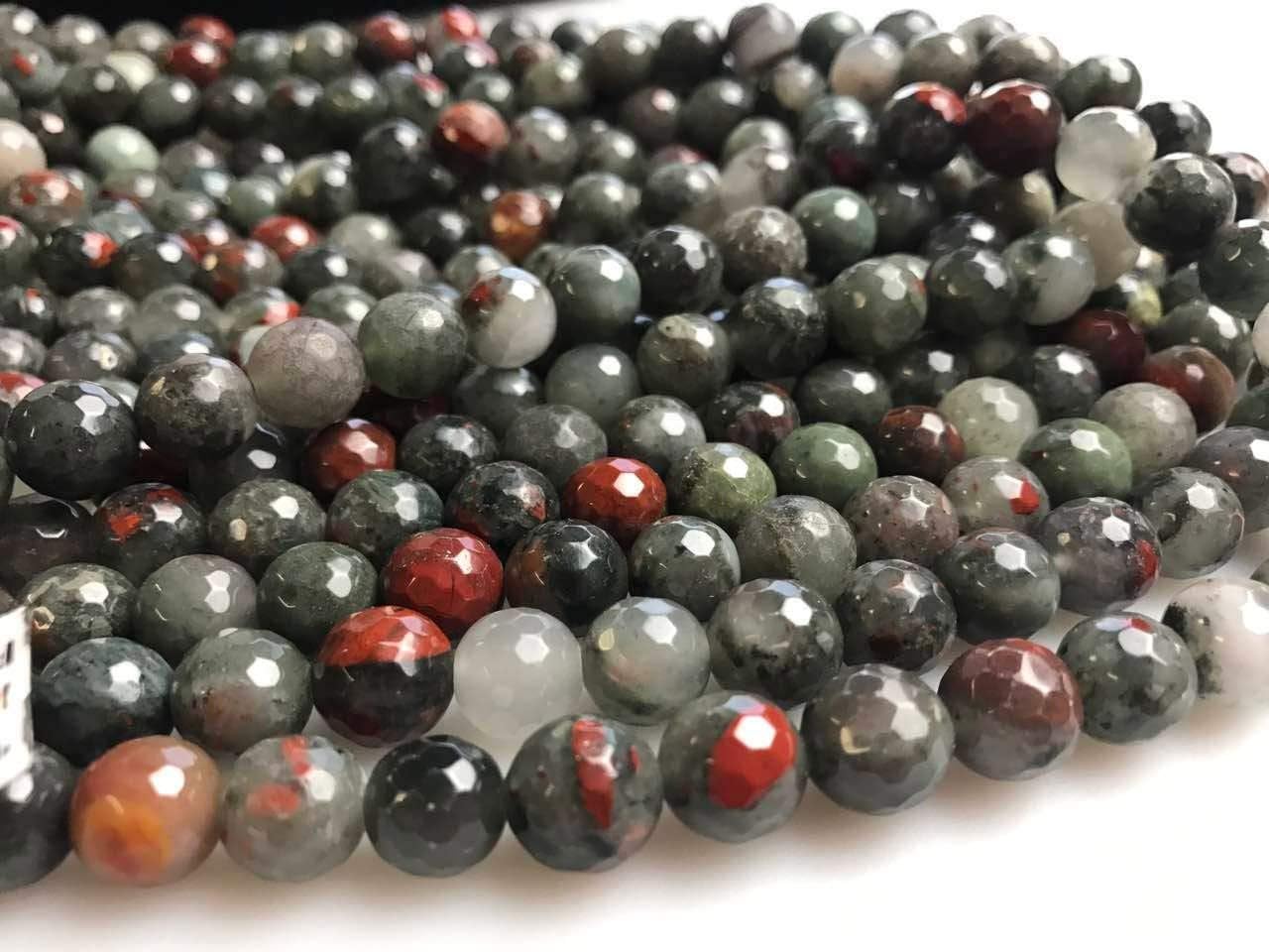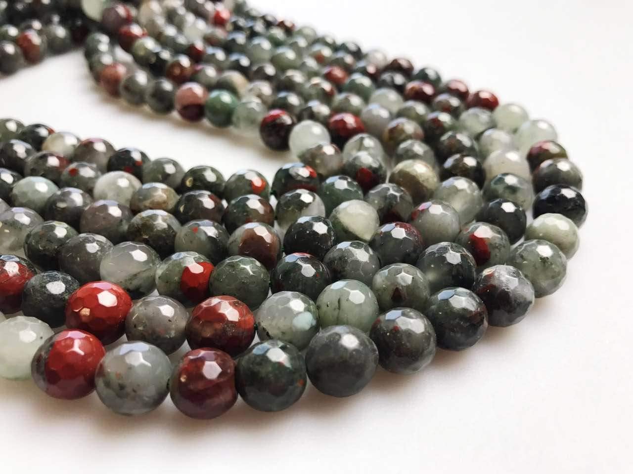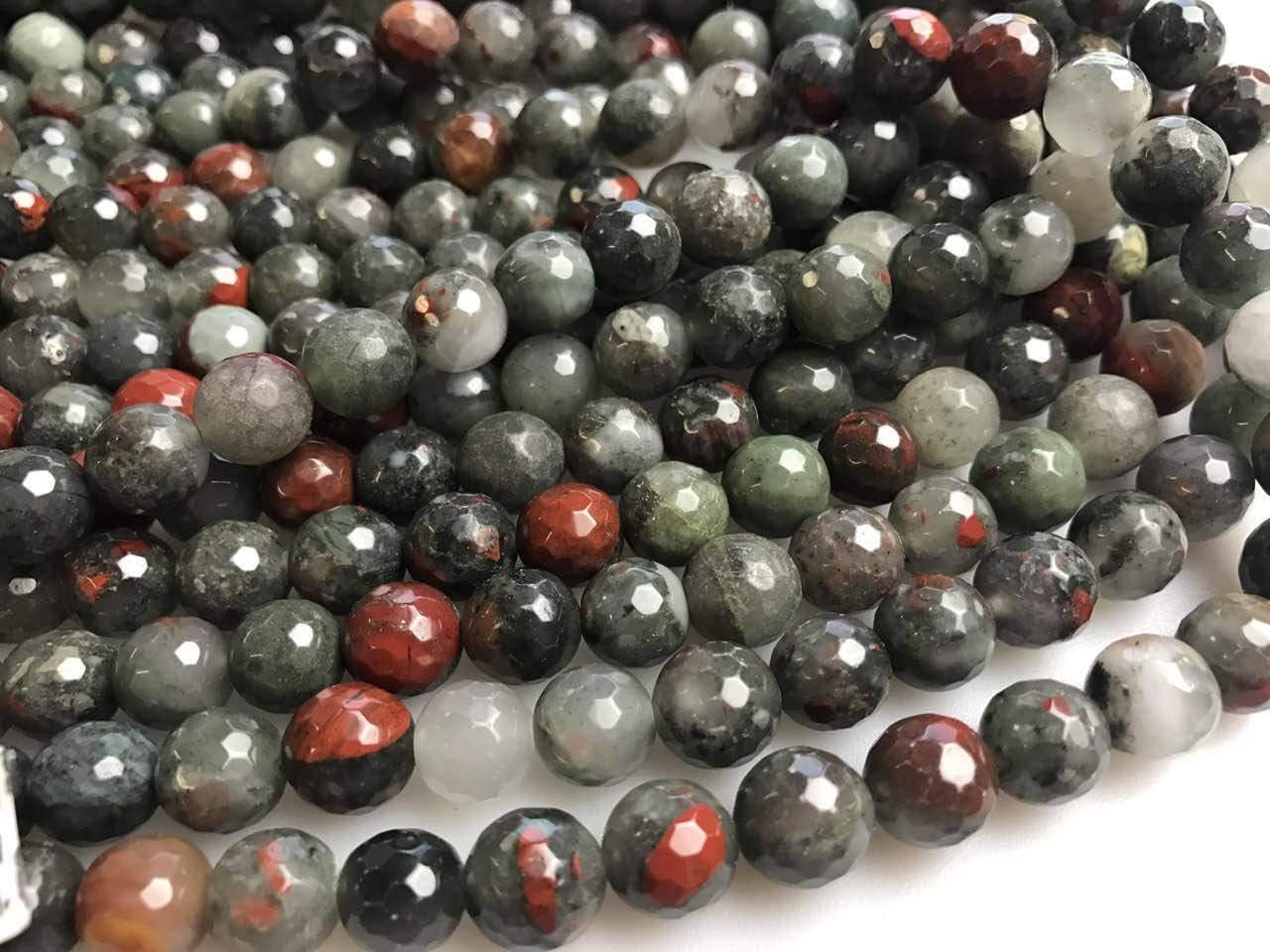 Condition: Nature Africa bloodstone Shape : faceted round Size: 6mm Approx 60pcs/Strand 8mm Approx 47pcs/Strand 10mm Approx 38pcs/Strand