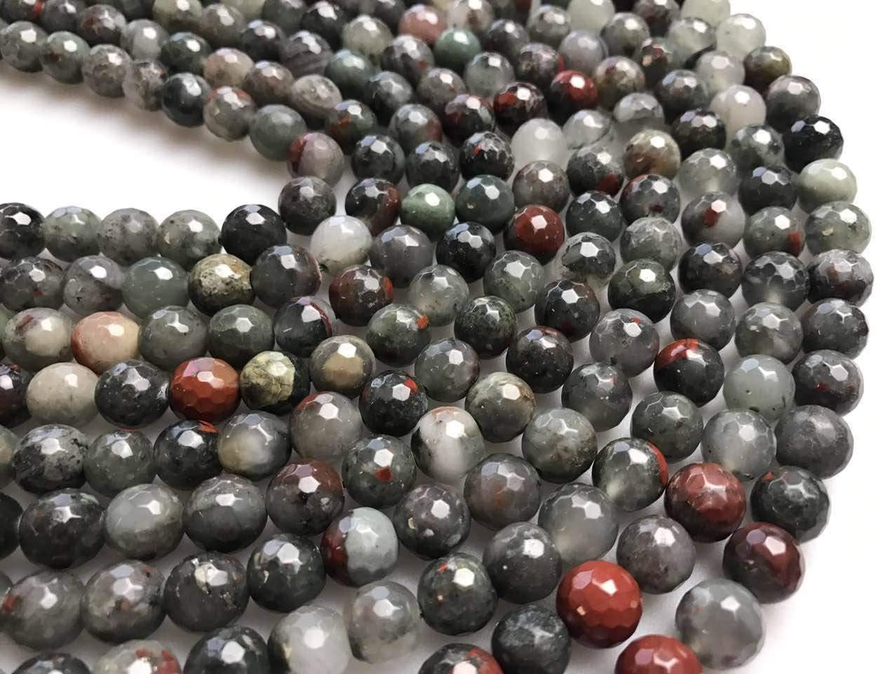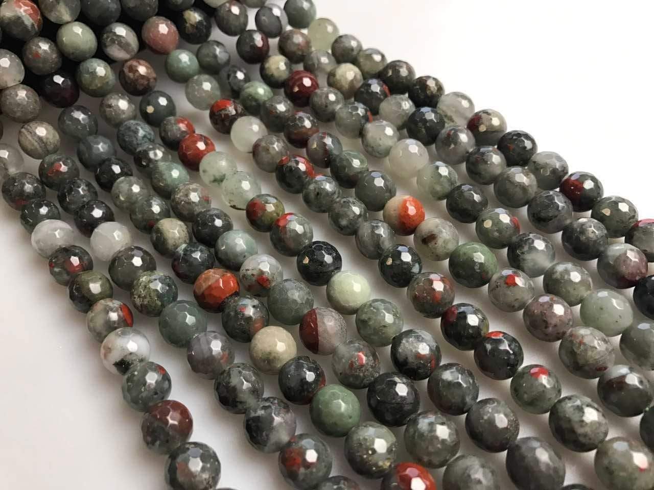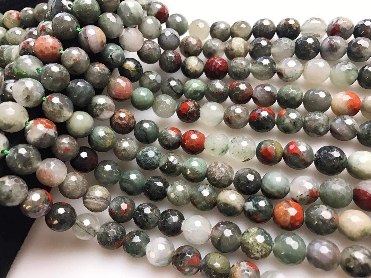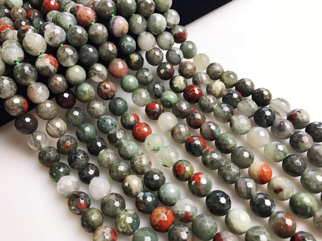 Condition: Nature Africa bloodstone Shape : faceted round Size: 6mm Approx 60pcs/Strand 8mm Approx 47pcs/Strand 10mm Approx 38pcs/Strand