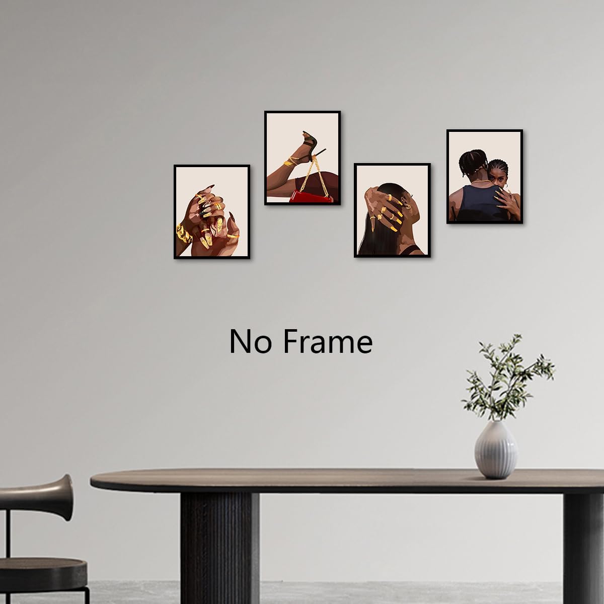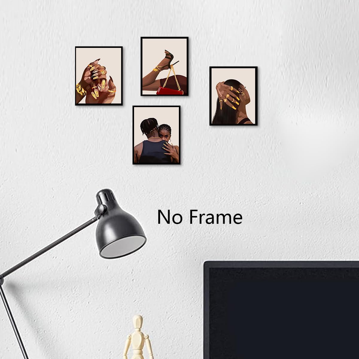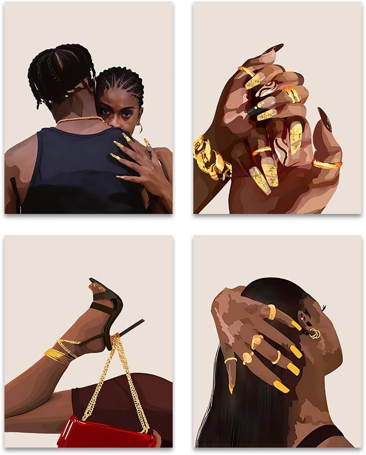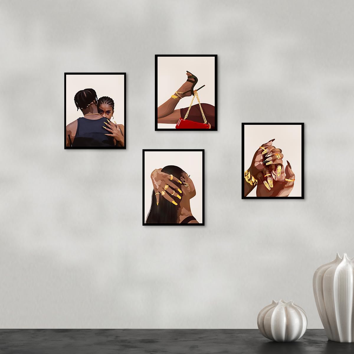 1. Set of 4 unframed canvas art prints featuring fashionable black boy and girl wall art posters, perfect for home decor in bedrooms.