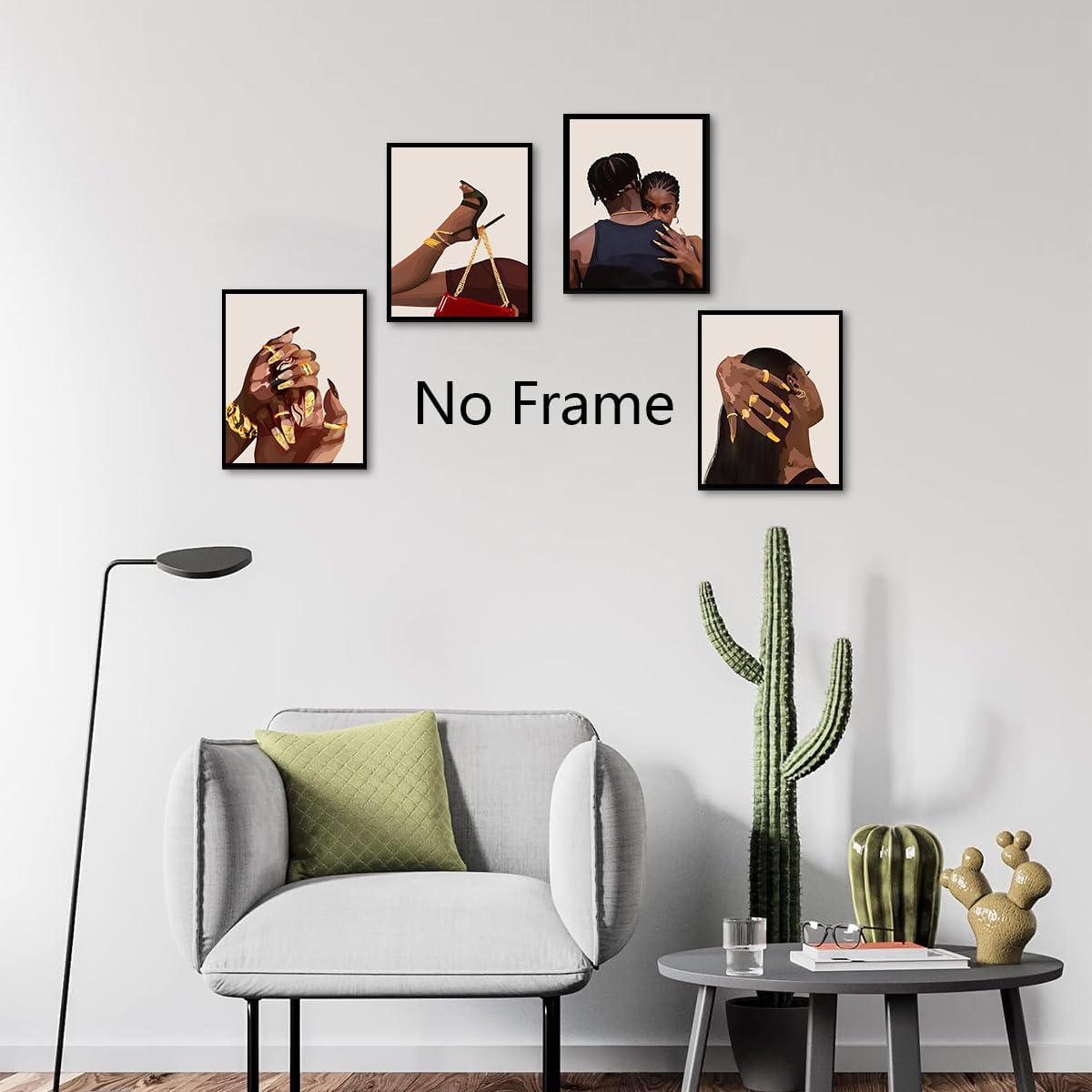 Introducing our stunning set of African American wall art canvas prints! This fashionable and modern collection features four unframed posters, each measuring 8 * 10 inches. Designed to elevate your home decor, these black girl and boy wall art prints are perfect for adding a touch of style to any room, especially bedrooms.
