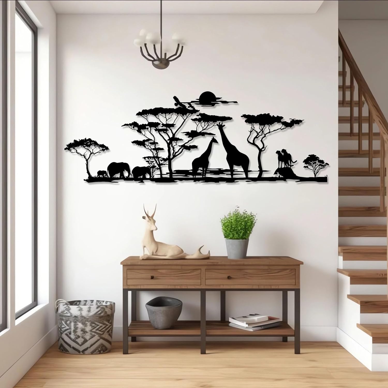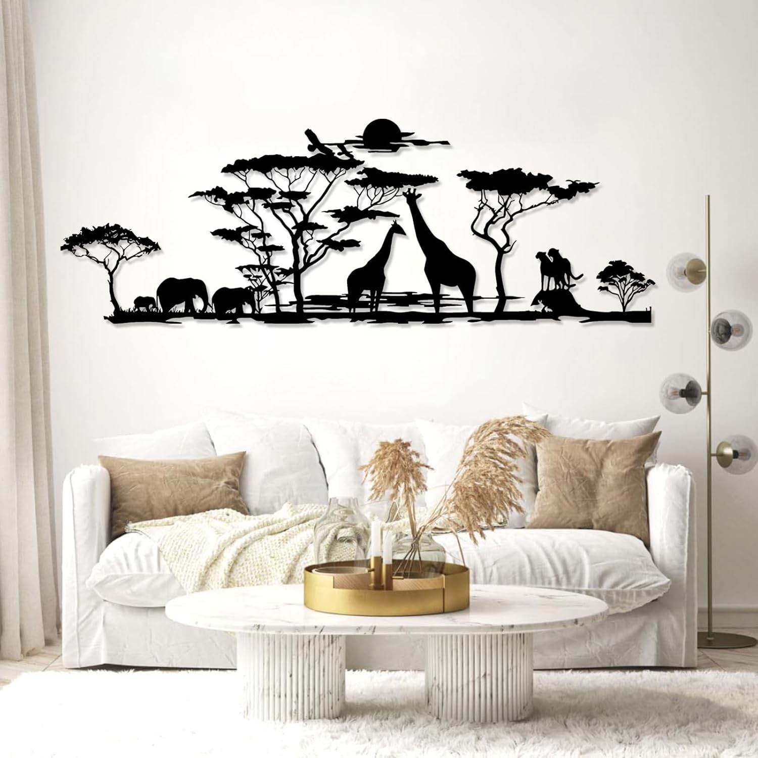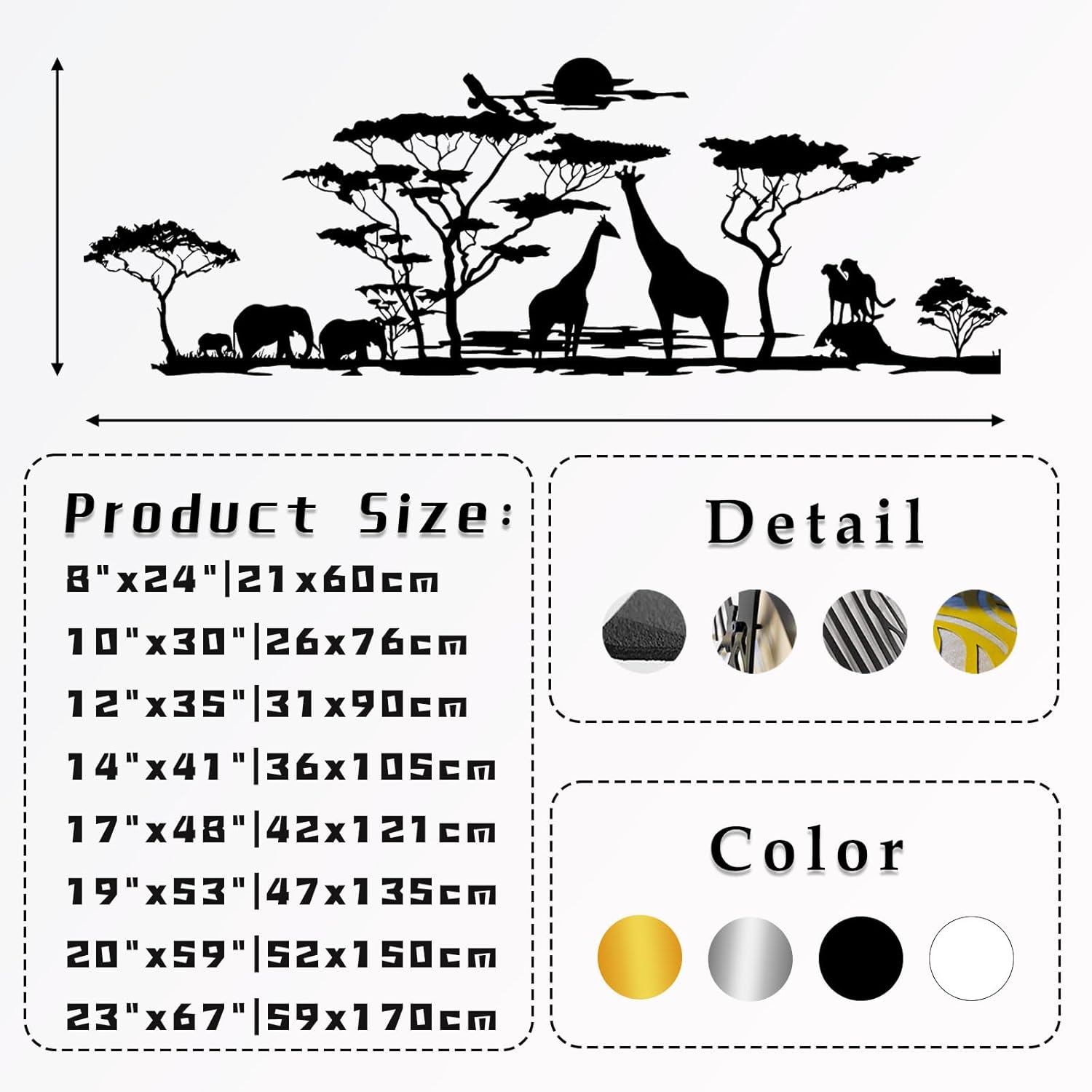 【Suitable Size】 The safari animals metal wall decor is available in a variety of sizes: 8″x24″|21x60cm, 10″x30″|26x76cm, 12″x35″|31x90cm, 14″x41″|36x105cm, 17″x48″|42x121cm, 19″x53″|47x135cm, 20″x59″|52x150cm, 23″x67″|59x170cm. With the right size for hanging in most areas, you will have many possibilities for decorating your home and other places