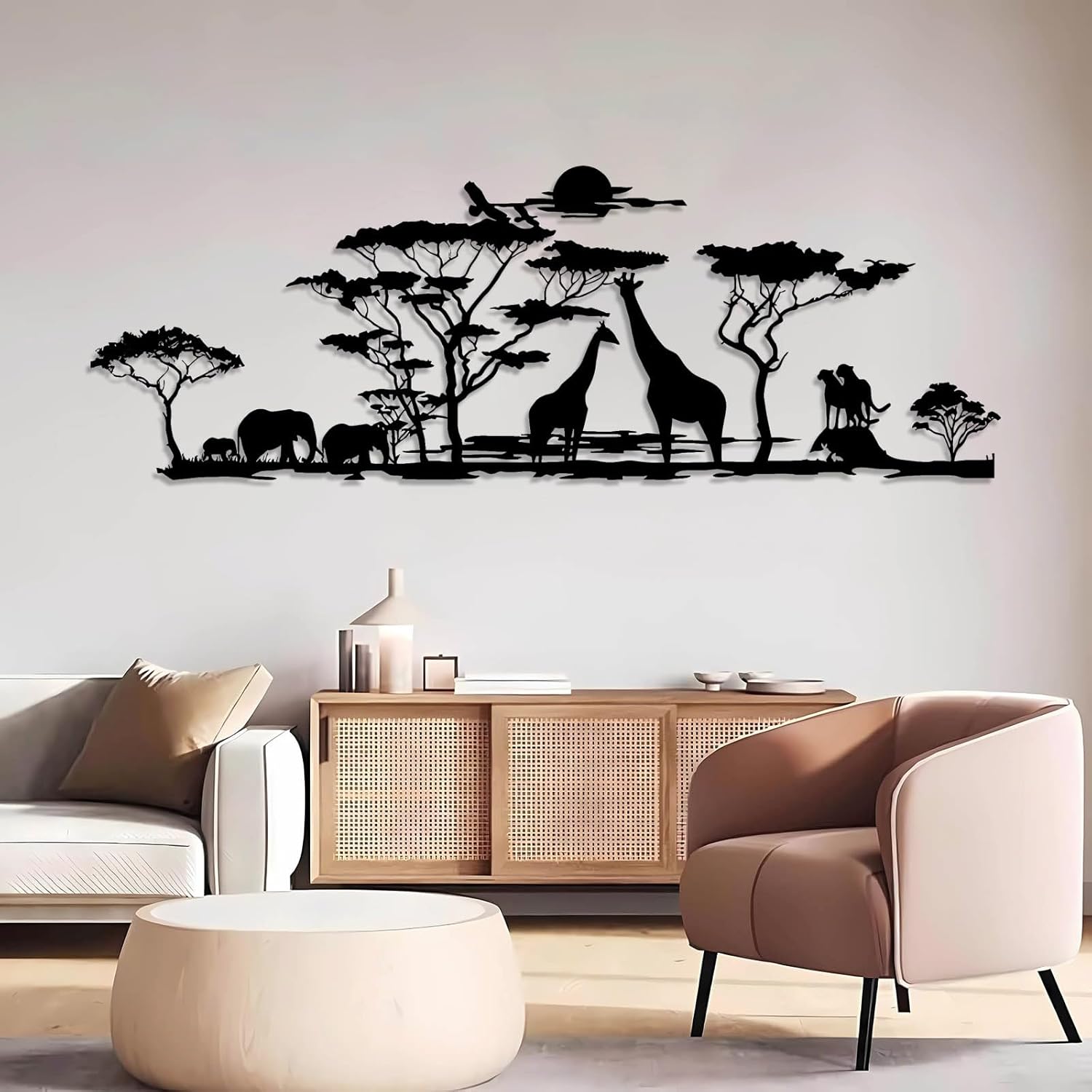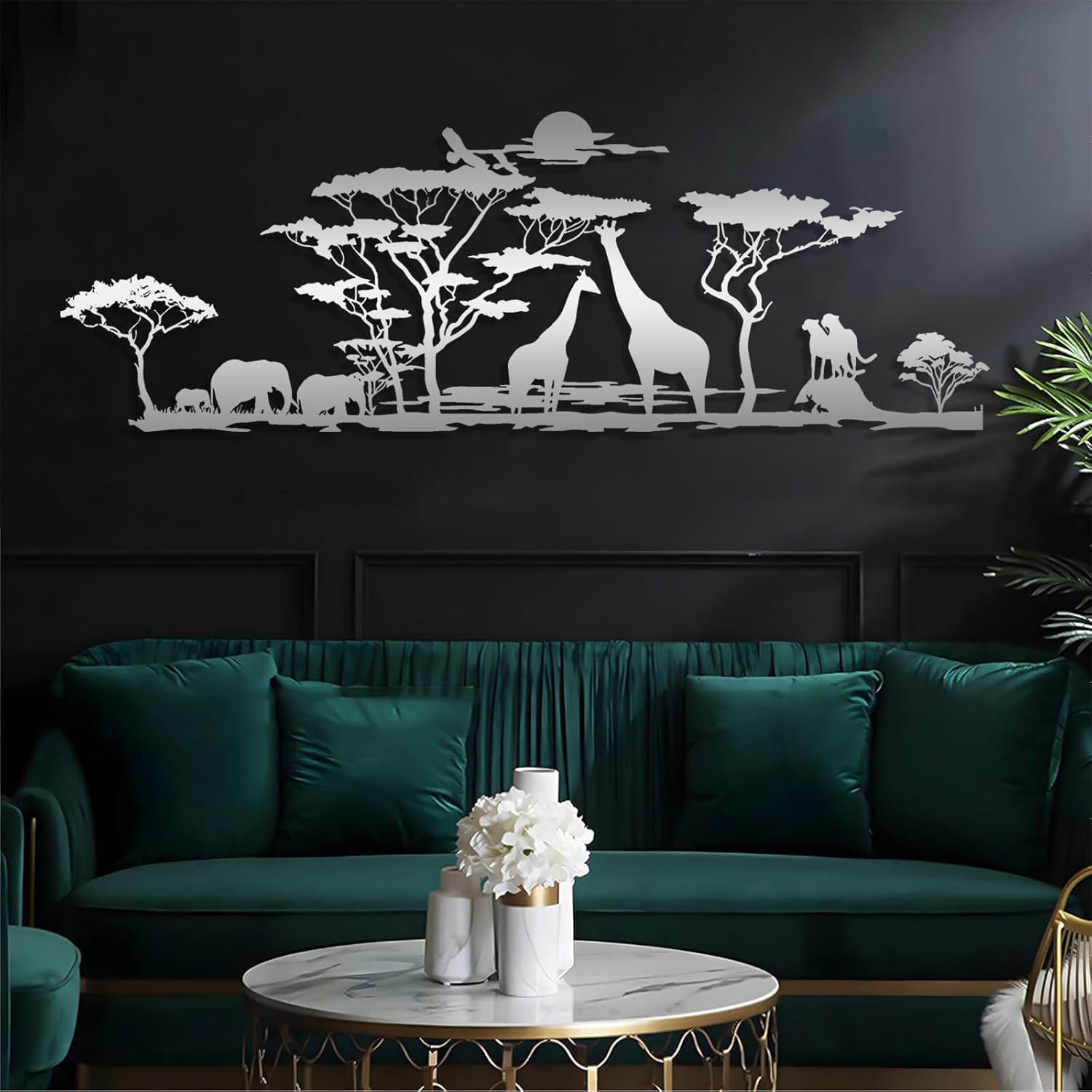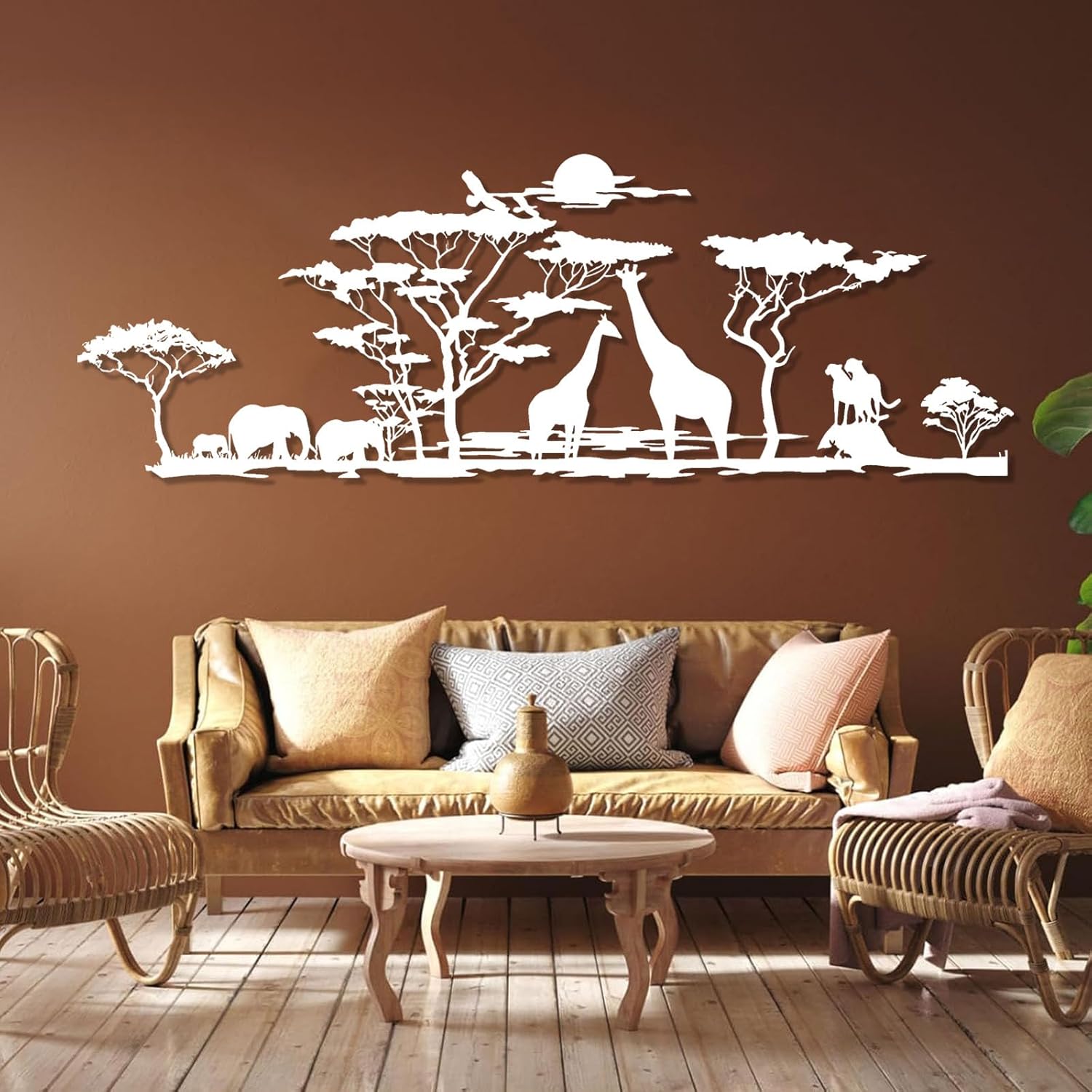 【Suitable Size】 The safari animals metal wall decor is available in a variety of sizes: 8″x24″|21x60cm, 10″x30″|26x76cm, 12″x35″|31x90cm, 14″x41″|36x105cm, 17″x48″|42x121cm, 19″x53″|47x135cm, 20″x59″|52x150cm, 23″x67″|59x170cm. With the right size for hanging in most areas, you will have many possibilities for decorating your home and other places