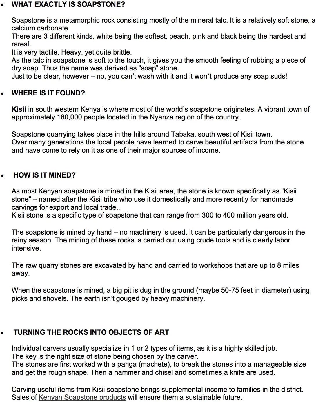 Soapstone is a natural mineral mined from the earth. Variations in color can range from pink to orange to white.