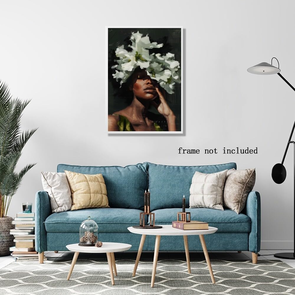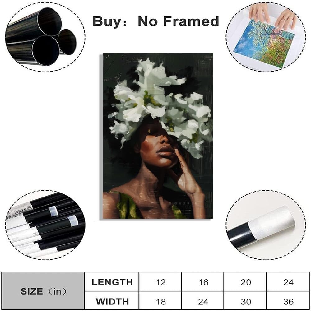 Black Woman Wall Art: This wall decor showcases “An oil painting of an exotic woman with white flowers”,bringing a mystery touch and adding playful elements to your space.frames add elegance,unframed provides a minimalist look