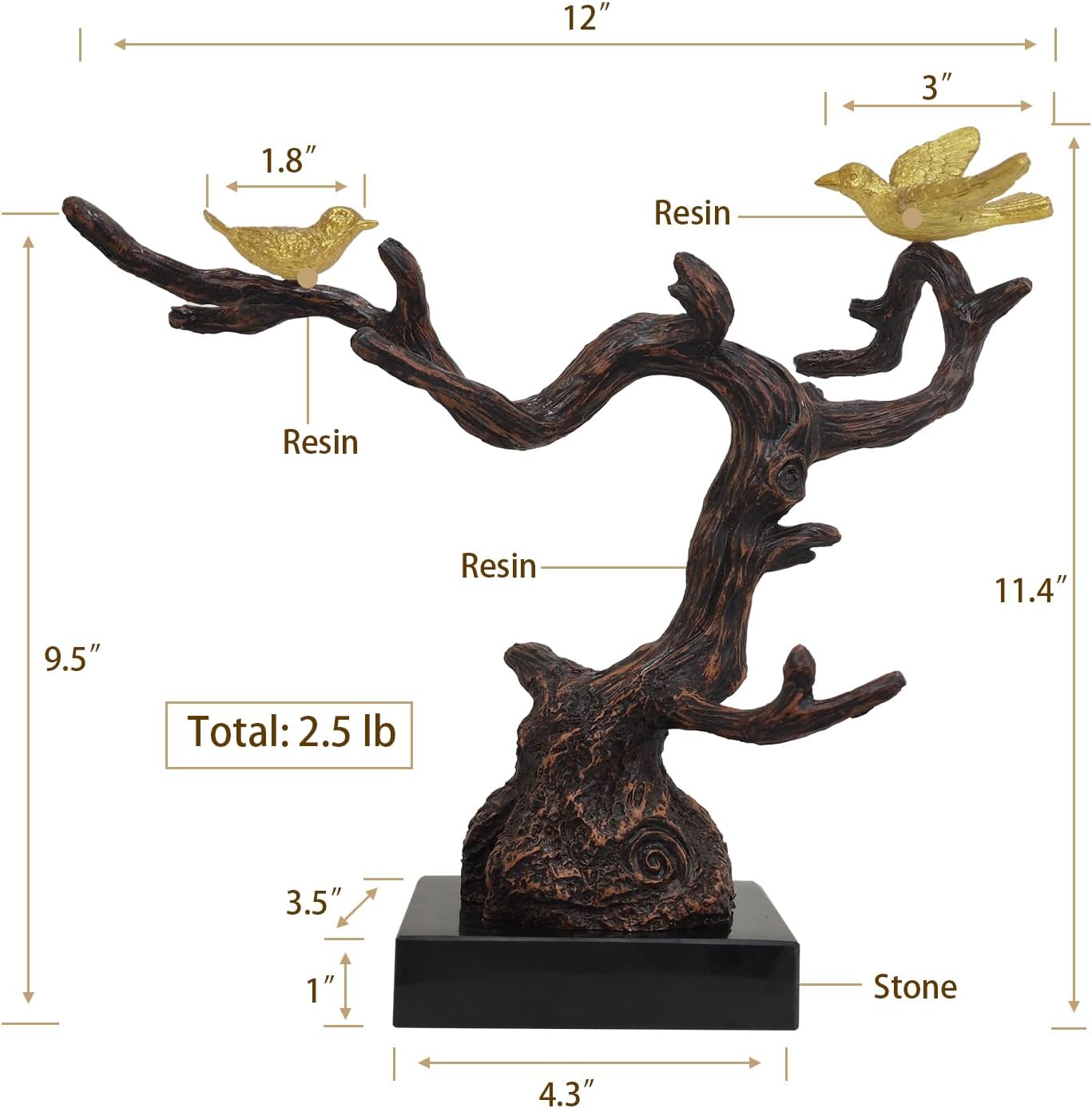 Material of the artifact :Resin tree and resin bird. Base is natural marble. Color:Hand brushed black tree,gold birds,black stone base.The contrasting colors add interests and catch the eyes.