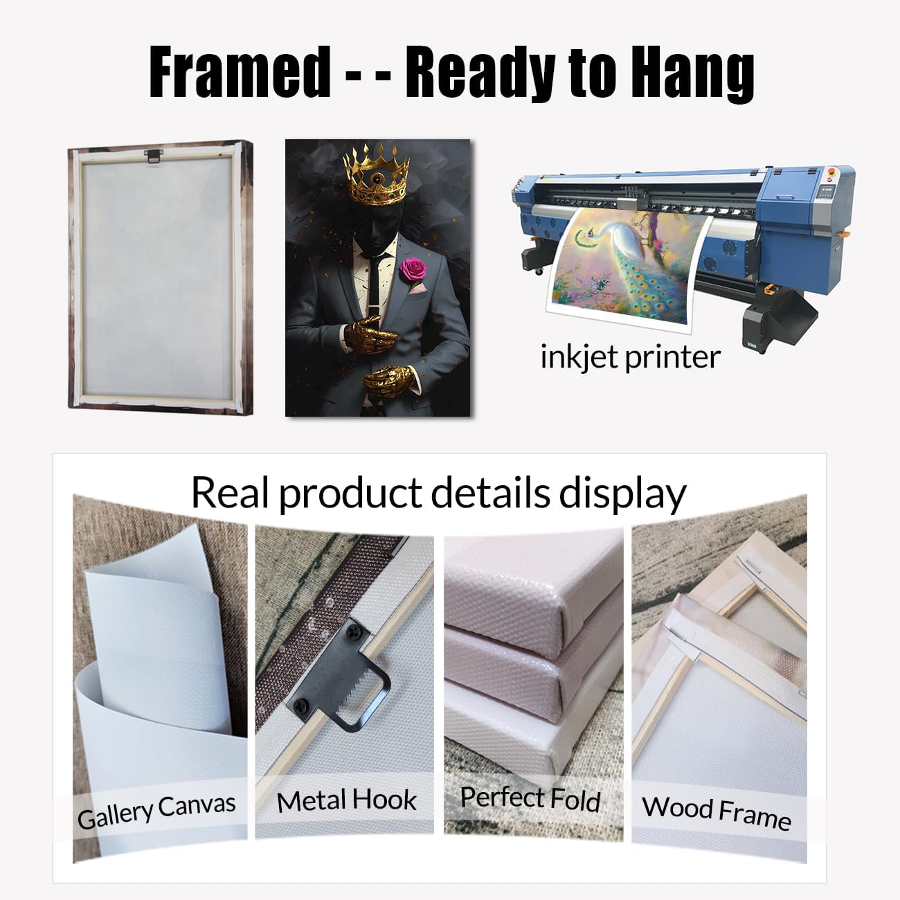 Gold Crown Framed – – Black king painting has been already stretched to solid wooden frame , the behind of panel has fixed a invisible black metal hook, ready to hang on anywhere!