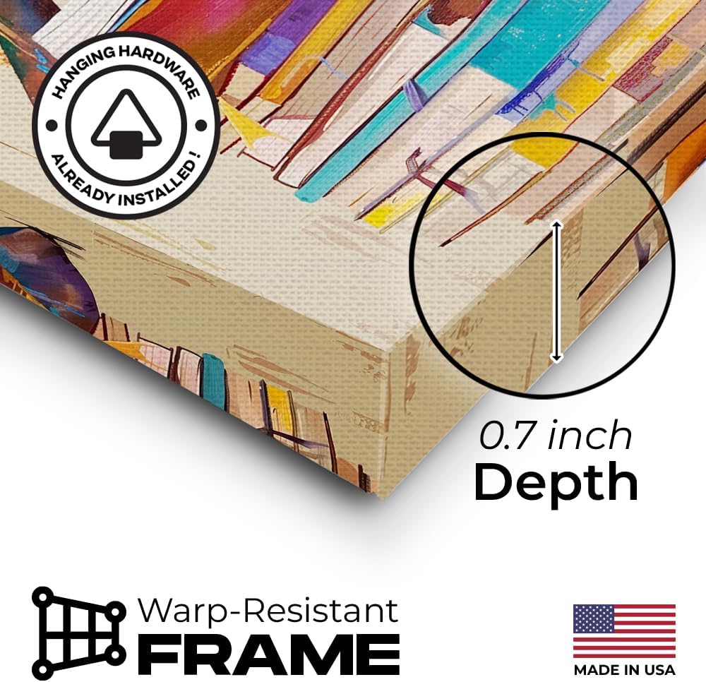 🖼️ Handcrafted Quality & Durability: This canvas wall art is mounted on a hand-made wooden frame, ensuring stability and durability for years. The canvas is meticulously treated with artistic spray to resist fading, preserving the vivid colors of the design. The artwork is created using premium materials for a long-lasting visual appeal that stays vibrant in your space.