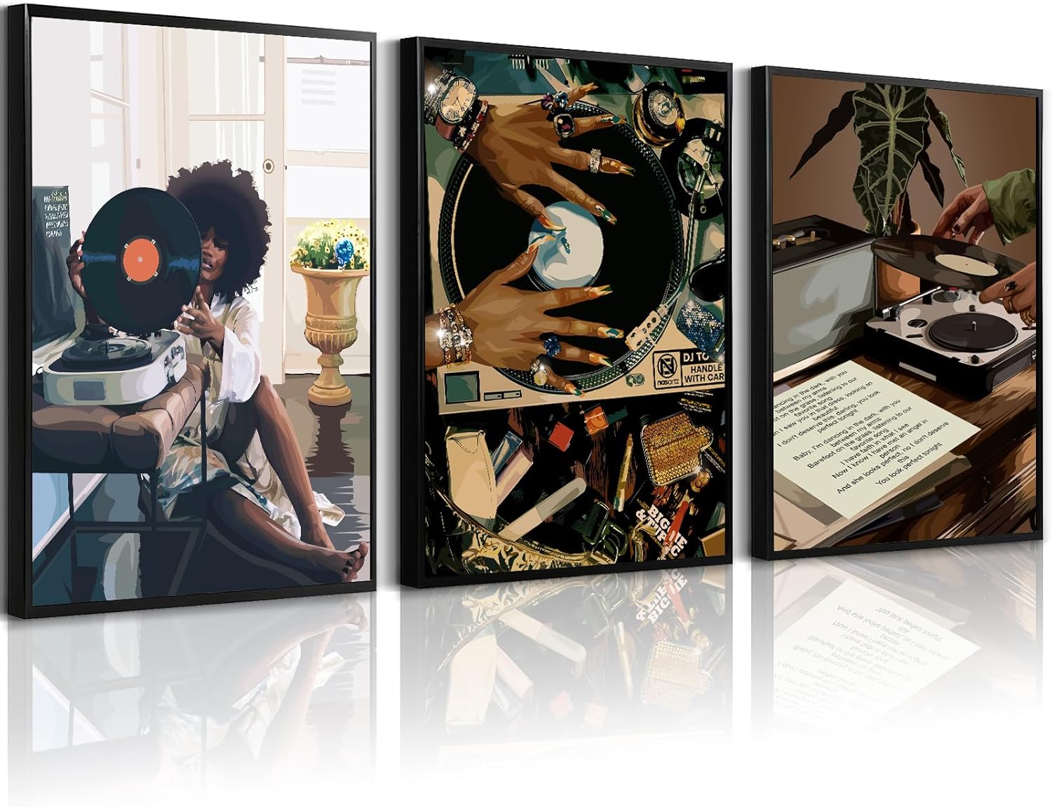 Black Woman Canvas Wall Art: Black Woman Canvas painting set size: 12*16 inches * 3 pieces, we have different styles and sizes for you to choose from to meet your needs and personal preferences. You can hang it anywhere you want, which will show your unique taste and personality and bring a new look to your living space.