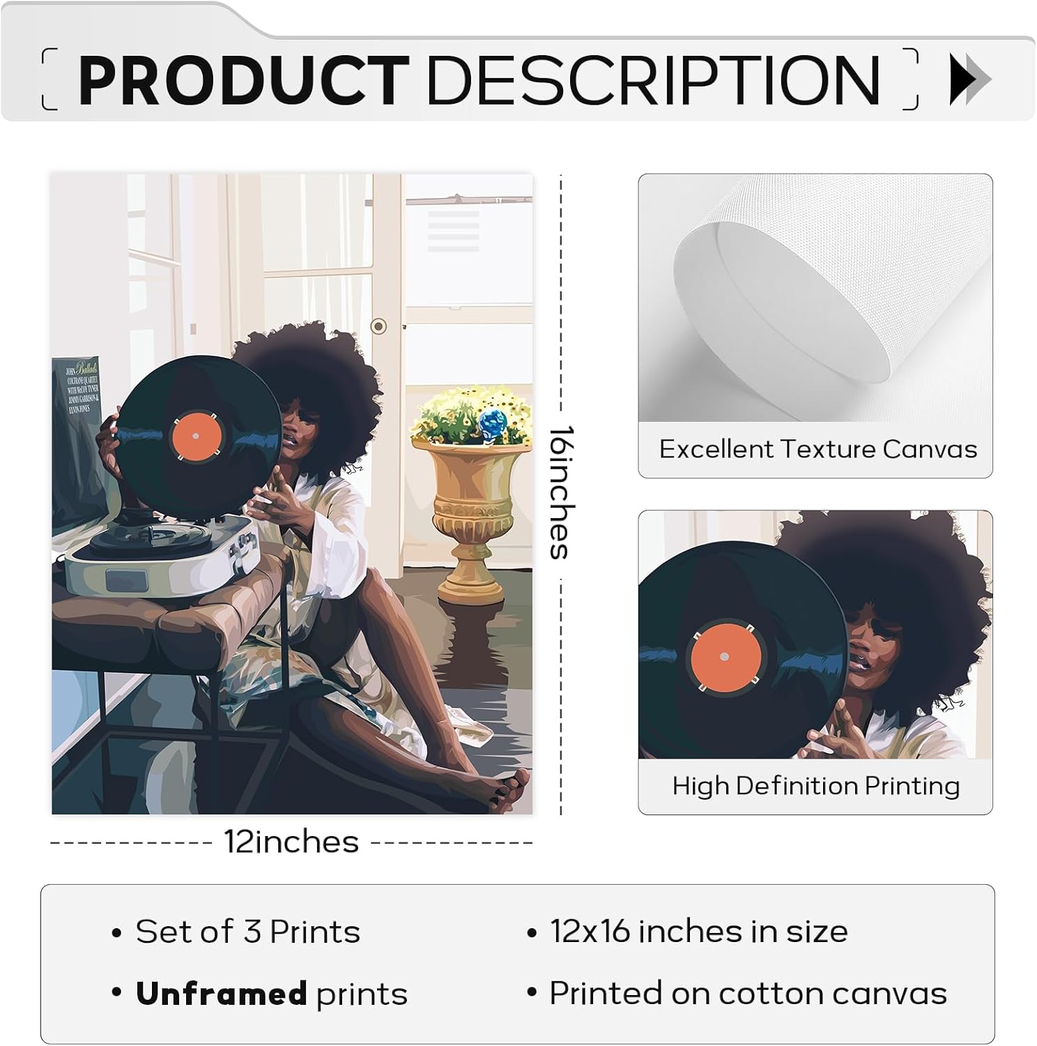 Black Woman Canvas Wall Art: Black Woman Canvas painting set size: 12*16 inches * 3 pieces, we have different styles and sizes for you to choose from to meet your needs and personal preferences. You can hang it anywhere you want, which will show your unique taste and personality and bring a new look to your living space.