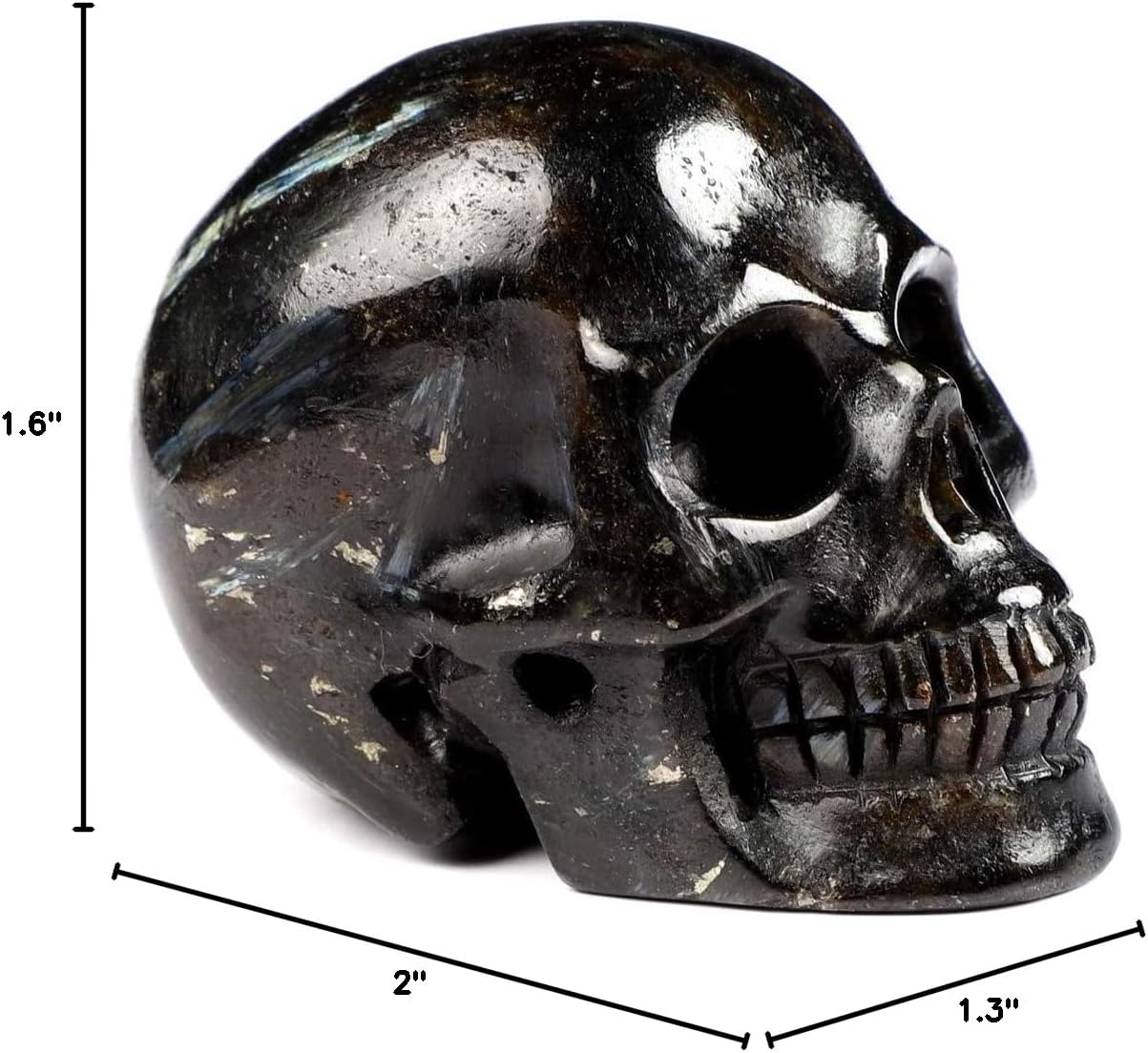Beautifully Carved Fine Art: Natural gemstone sculpted with our exclusive Realistic crystal skull design (Russian Arfvedsonite).