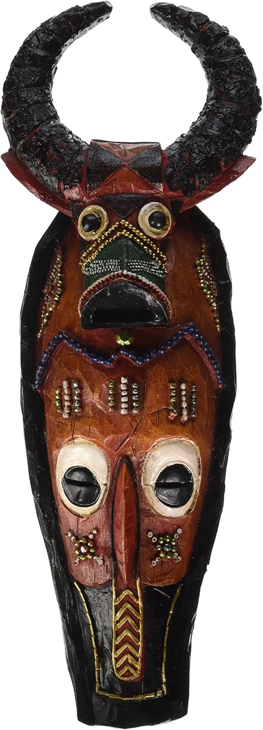 Artist okulaja AIMS to add a tribal touch to home or gallery wall with this stylized sculpture created exclusively for Toscano. Roughly hand-carved, this sensuously textural work is cast in quality designer resin, hand-painted in the bright colors of African celebrations, & then accented with tiny faux gems set in an exotic tribal motif. Approx. 4″Wx2½ “Dx11″H. 1 lb.