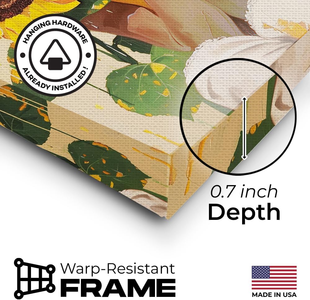 🖼️ Handcrafted Quality & Durability: This canvas wall art is mounted on a hand-made wooden frame, ensuring stability and durability for years. The canvas is meticulously treated with artistic spray to resist fading, preserving the vivid colors of the design. The artwork is created using premium materials for a long-lasting visual appeal that stays vibrant in your space.