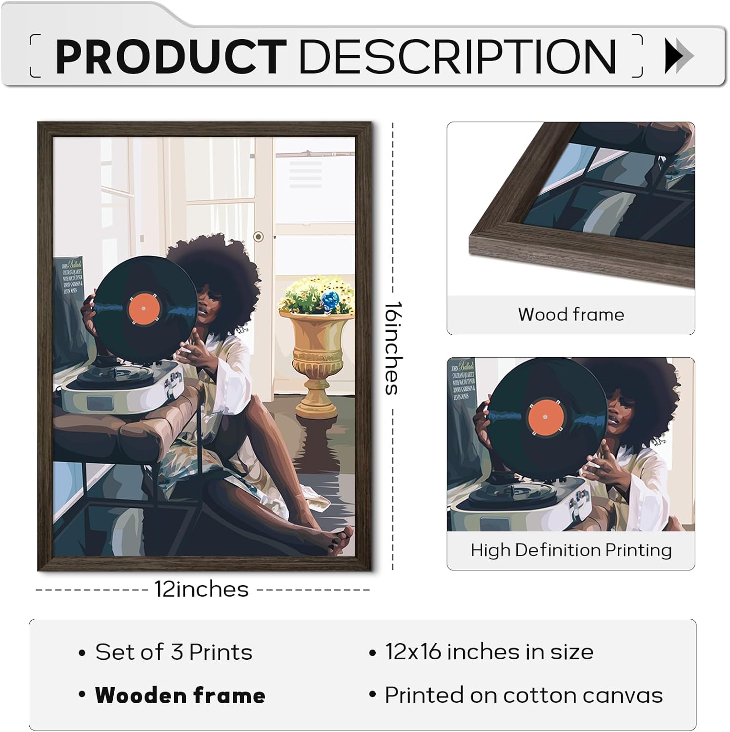 Black Woman Canvas Wall Art: Black Woman Canvas painting set size: 12*16 inches * 3 pieces, we have different styles and sizes for you to choose from to meet your needs and personal preferences. You can hang it anywhere you want, which will show your unique taste and personality and bring a new look to your living space.