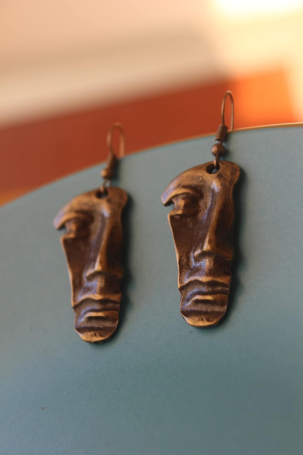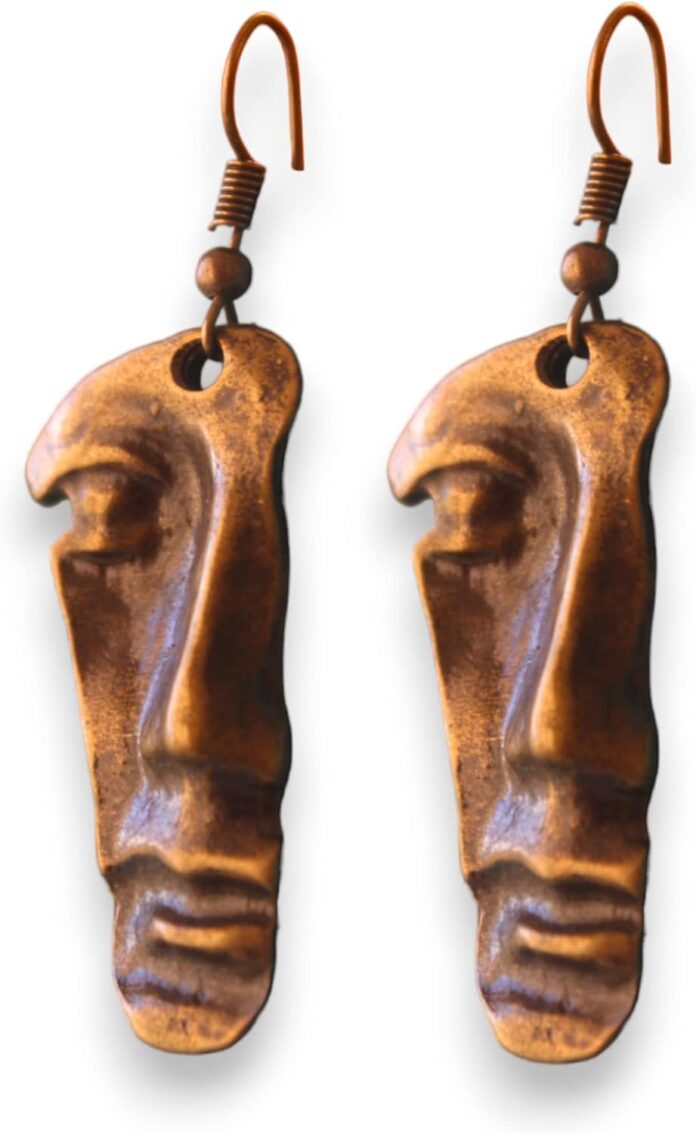 Bronze face earrings.