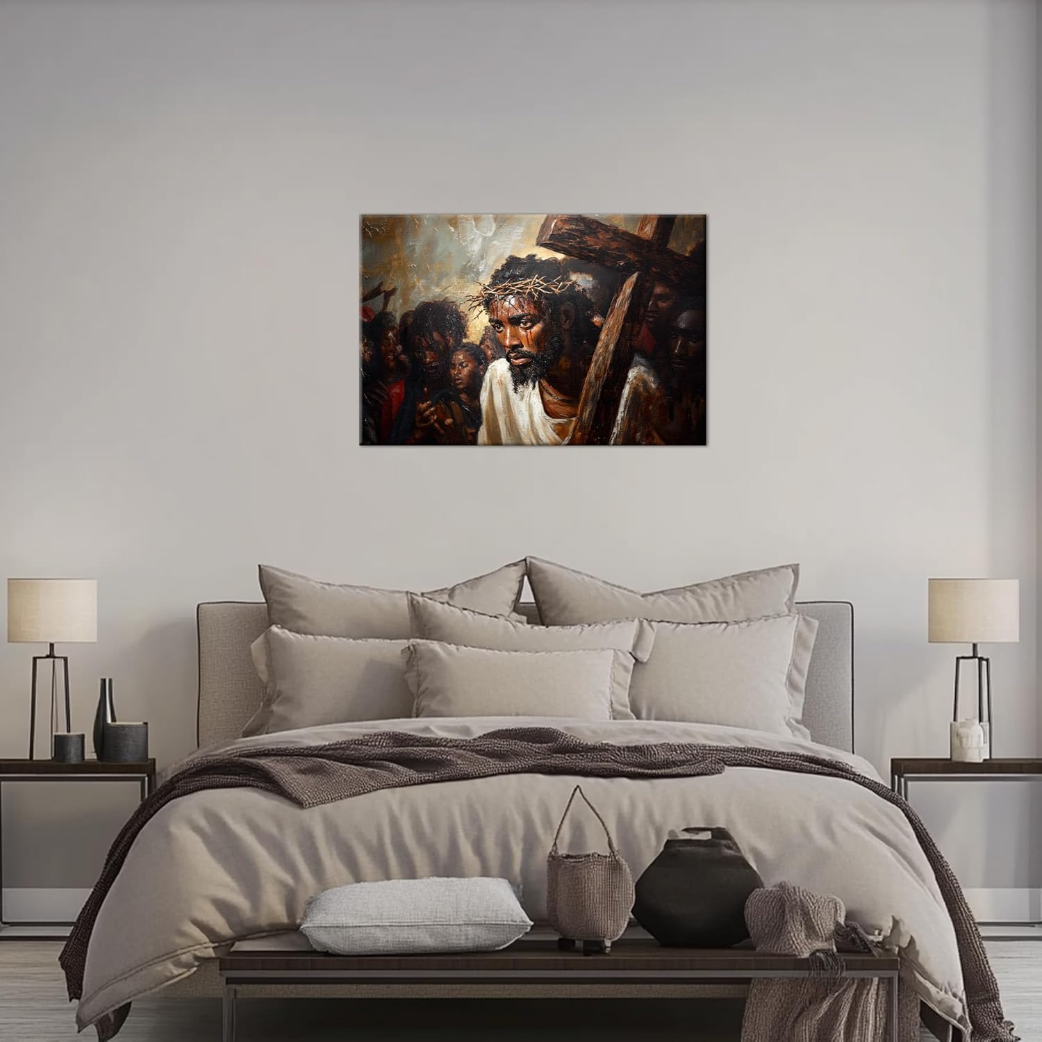 Quality Materials: Crafted on high-grade Christian wall art canvas, this piece ensures durability and long-lasting color. The canvas-wrapped inner frame and sturdy outer frame give it a professional look, making it a valuable addition to Christian art collections.