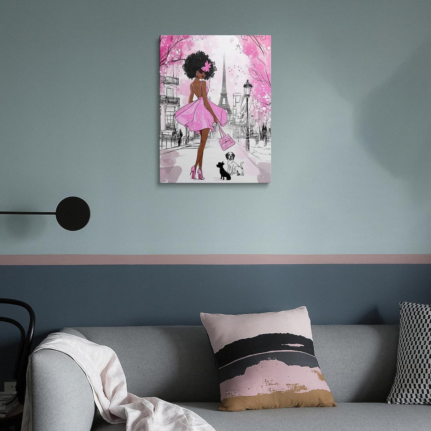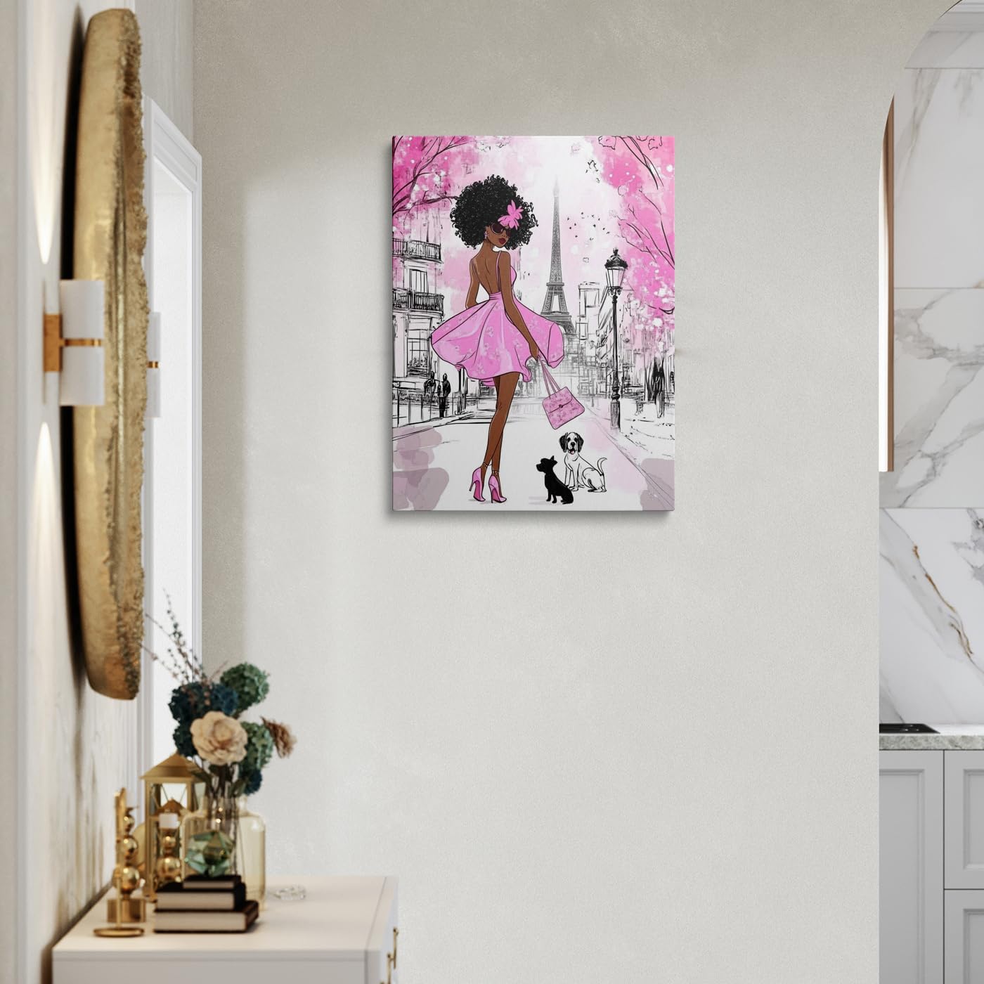 Bring a sense of elegance and sophistication to your home with our black girl canvas wall art. The design includes a woman in front of the eiffel tower wall art, blending african american wall art canvas with classic parisian charm, ideal for your tower-themed decor.