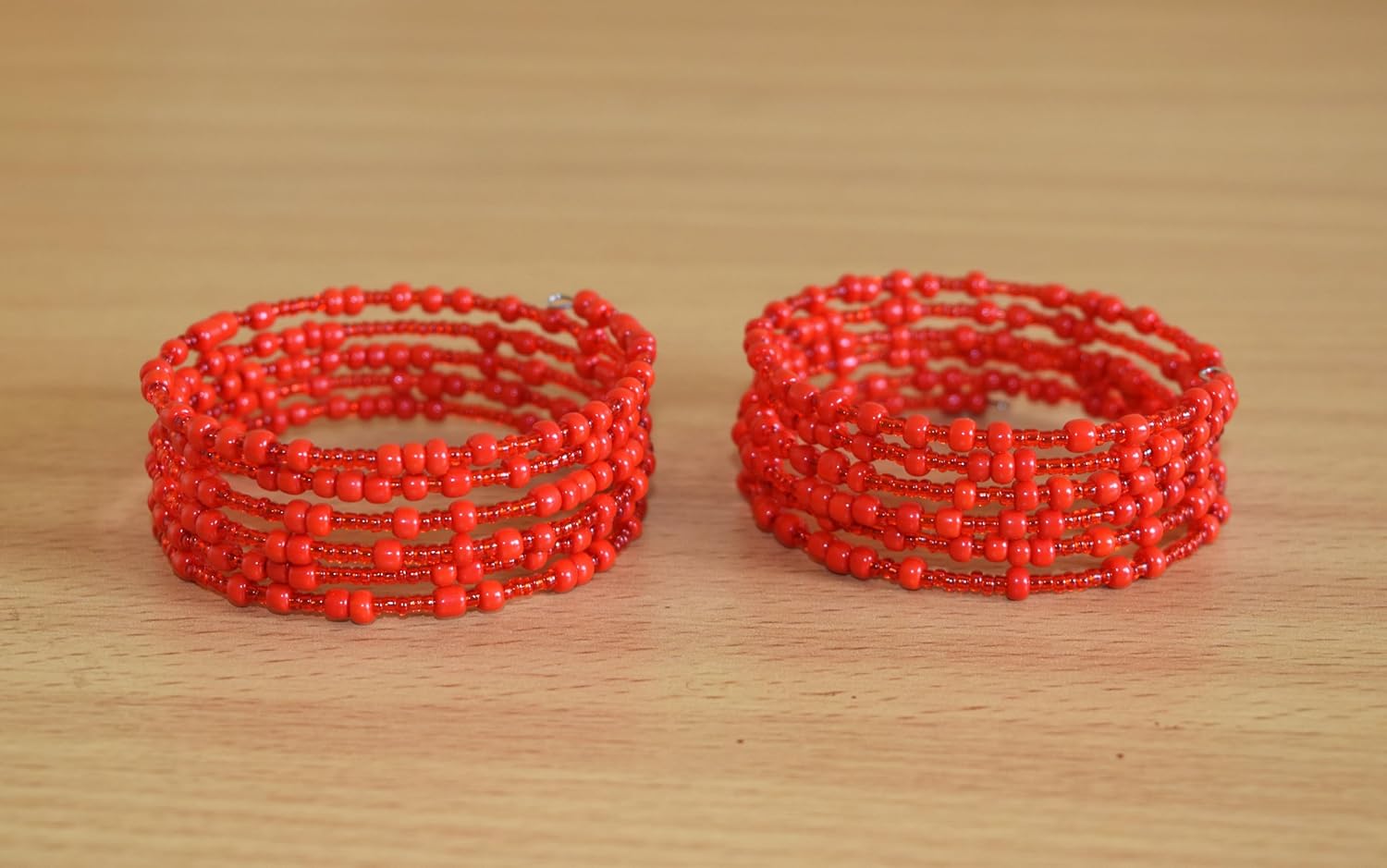 Handmade by our Artisans specialized in beads bracelets. The beads are strung on a memory wire which wrap the wrist gradually one by one. The used materials are quality beads and memory wire. To put on or remove just wind the loops around your wrist. Wrap around the wrist. Kindly do not try to bend/adjust the bracelet as the memory wire might lose it’s round shape. Size: Medium. Approximately 2,2” Diameter x 2” Height. The circumference, length of one circle is approximately 7.75”