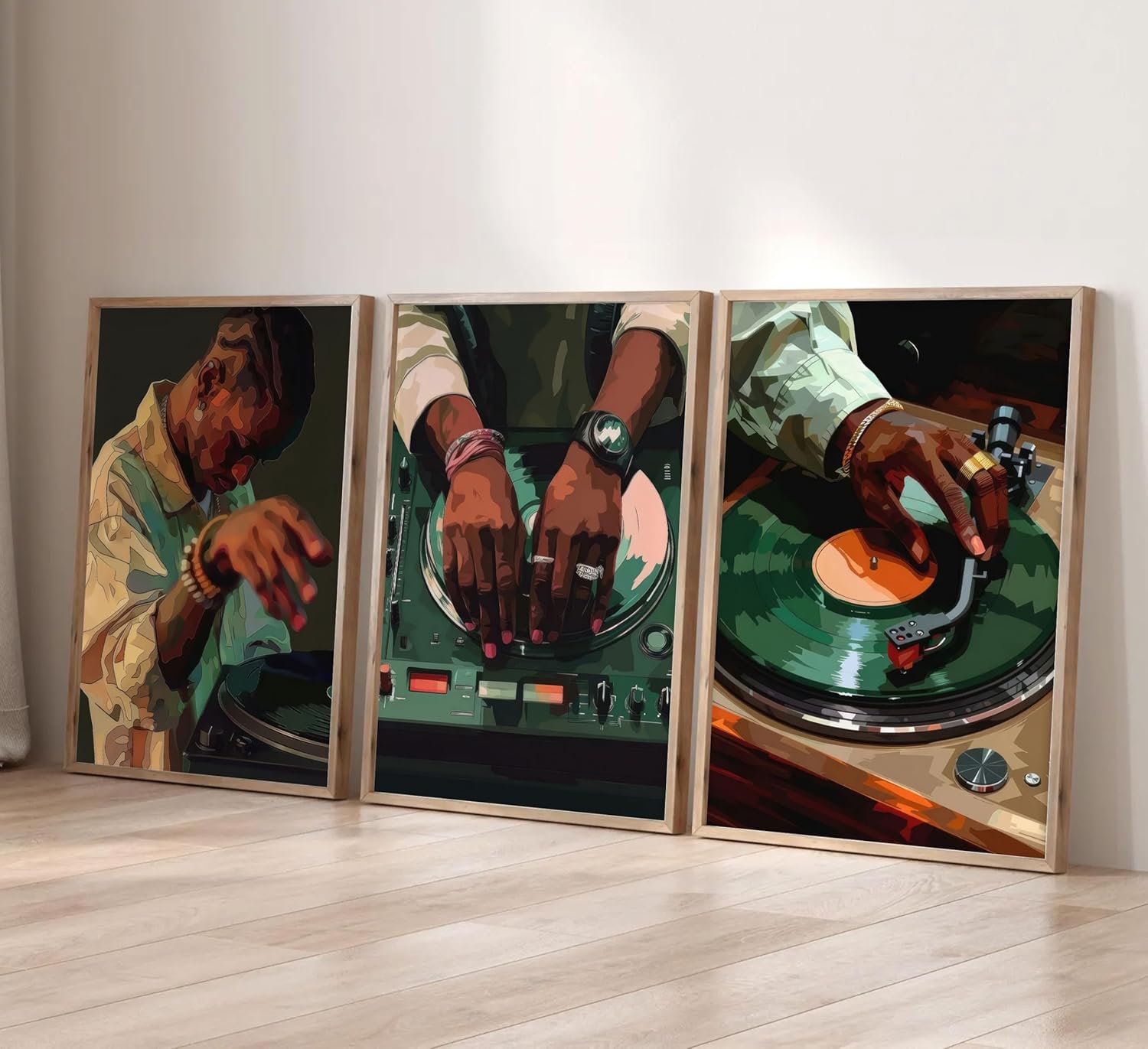 【Black Man Wall Art】This set of 3 wall decoration posters with the theme of black DJing is available in 12″ x 16″ (30cm x 40cm) & 16″ x 24″ (40cm x 60cm)
