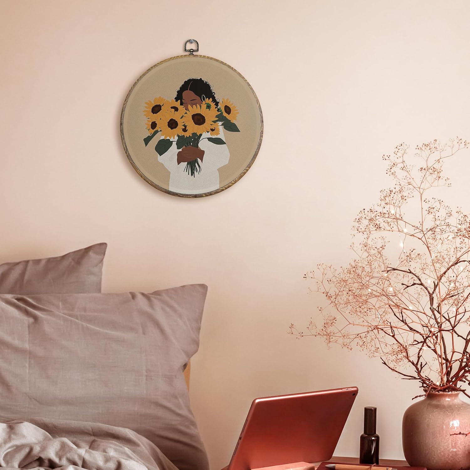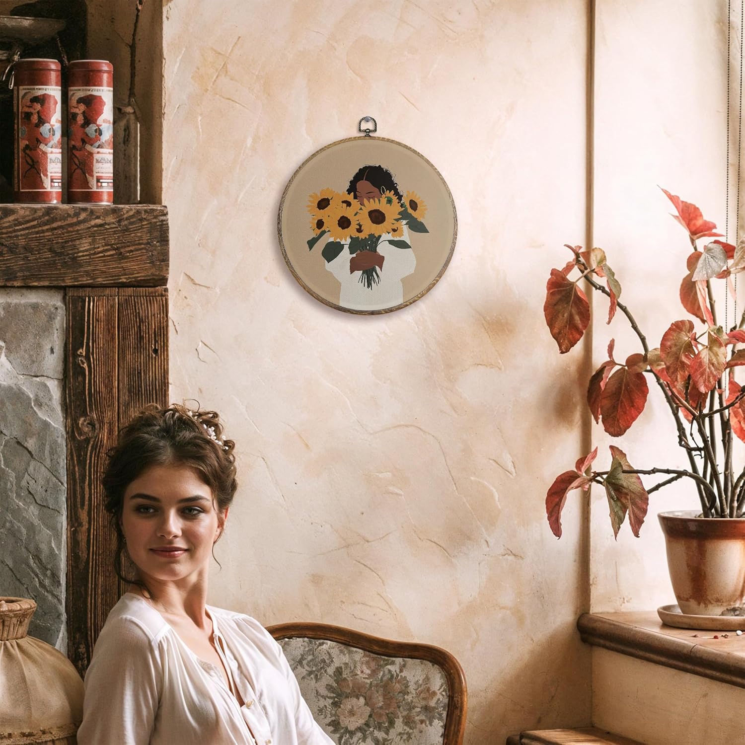 Material: The artwork is printed on textile canvas using digital printing technology and features versatile patterns. The canvas is tightly stretched over a round imitated wooden frame, ensuring it remains sturdy and does not warp.