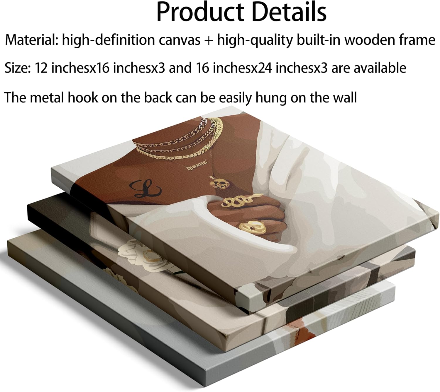 This stylish set of Black woman wall art Size is 12inx16inx3pcs With frame You can hang easily,You don’t need to buy any accessories for this