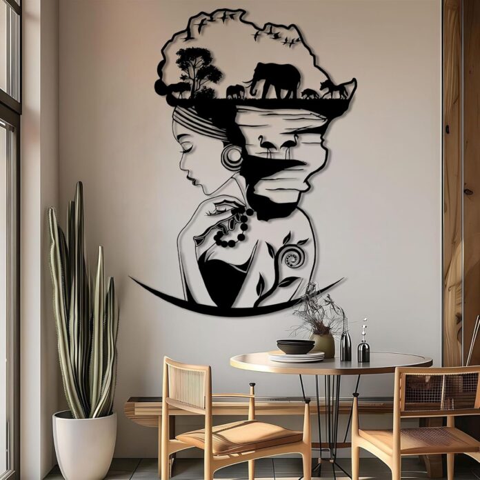 African Woman Map Metal Wall Art: This metal wall decoration is a “love letter” dedicated to African culture. The silhouette of a beautiful African woman is cleverly combined with the raw charm of the wildlife of the African savannah. Whether you’re a travel enthusiast or someone who misses your hometown, it’s not just a decoration, it’s a tribute to the “African soul. ” Pay tribute to the beauty, resilience of this land, and the stories that have been passed down for thousands of years