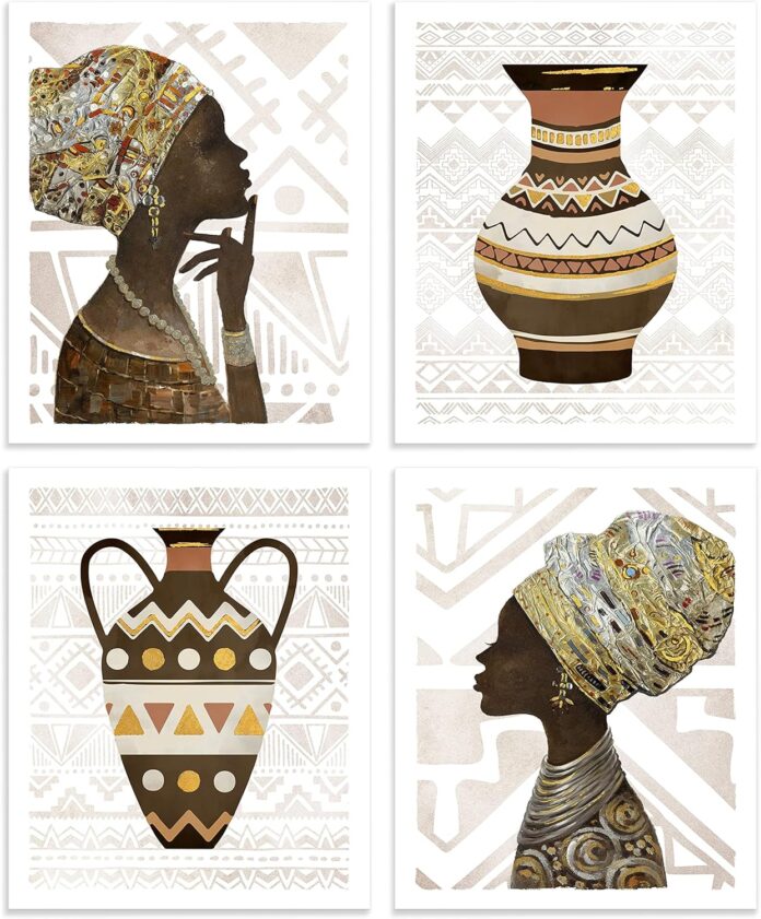 African Black Women Wall Art: Uniquely designed by “color play” artists. let the energetic breath of the vase fill your room. This abstract wall art will brighten your blank walls. It is also a warm gift for friends.